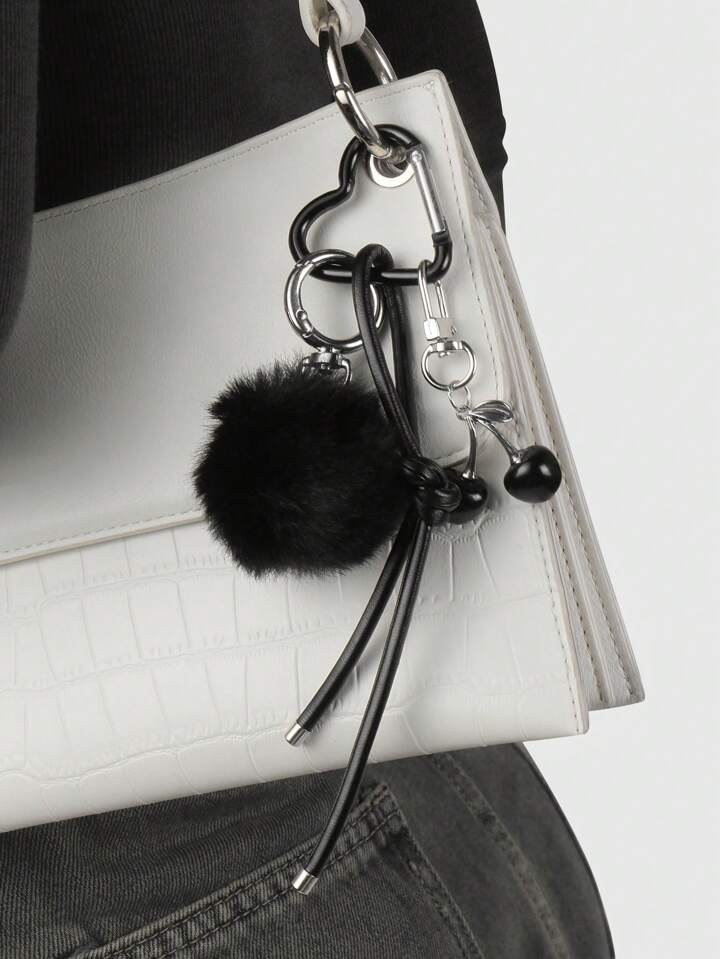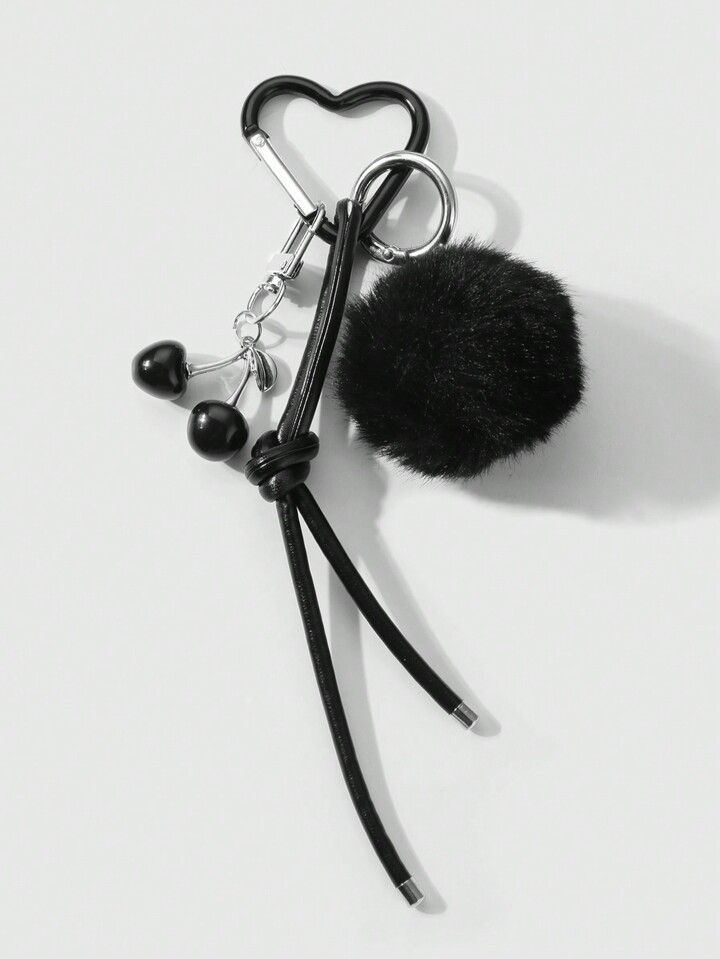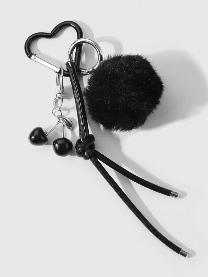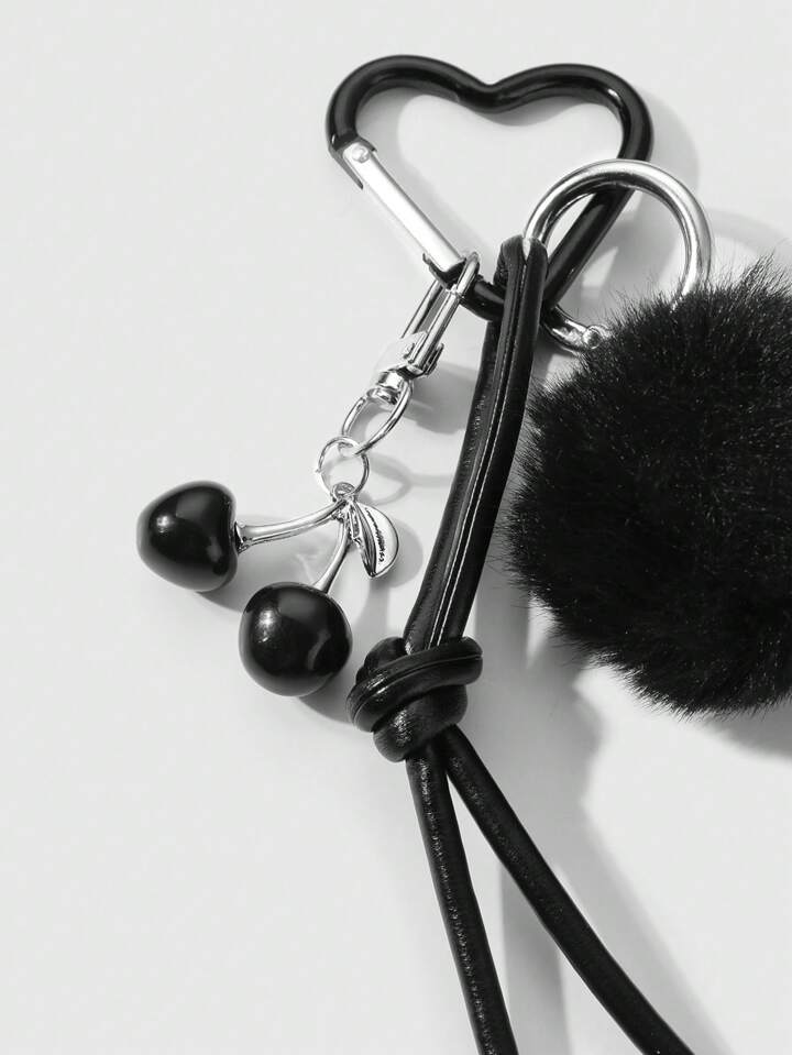 Kawaii 1pc Y2K Elegant Sweet Goth Style Black Plush Ball Faux Leather Cherry Pendant Keychain, Suitable For Women, Daily Wear Or Holiday Gift
