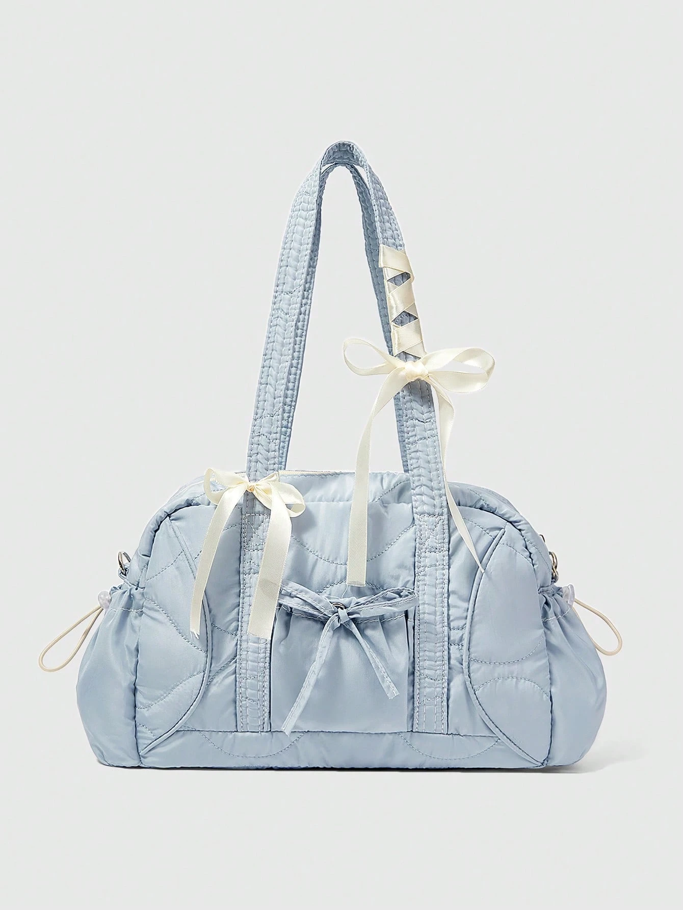 Kawaii 1pc Y2K Light Blue Large Capacity Multi-Pocket Handbag Shoulder Bag, Suitable For Commuting, Shopping And Back To School Season (Includes Bow Ribbon For DIY)