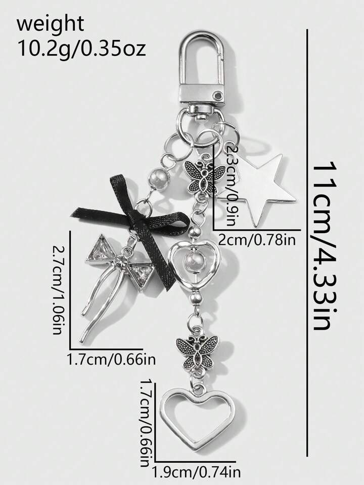 Kawaii 1pc Y2K Minimalist Versatile Highly Attractive Silver Hollow Butterfly Heart Star Black Ribbon Rhinestone Butterfly CCB Bead Keychain, Bag Charm, Earphone Accessory - Suitable For Women, Daily Wear, Gifts