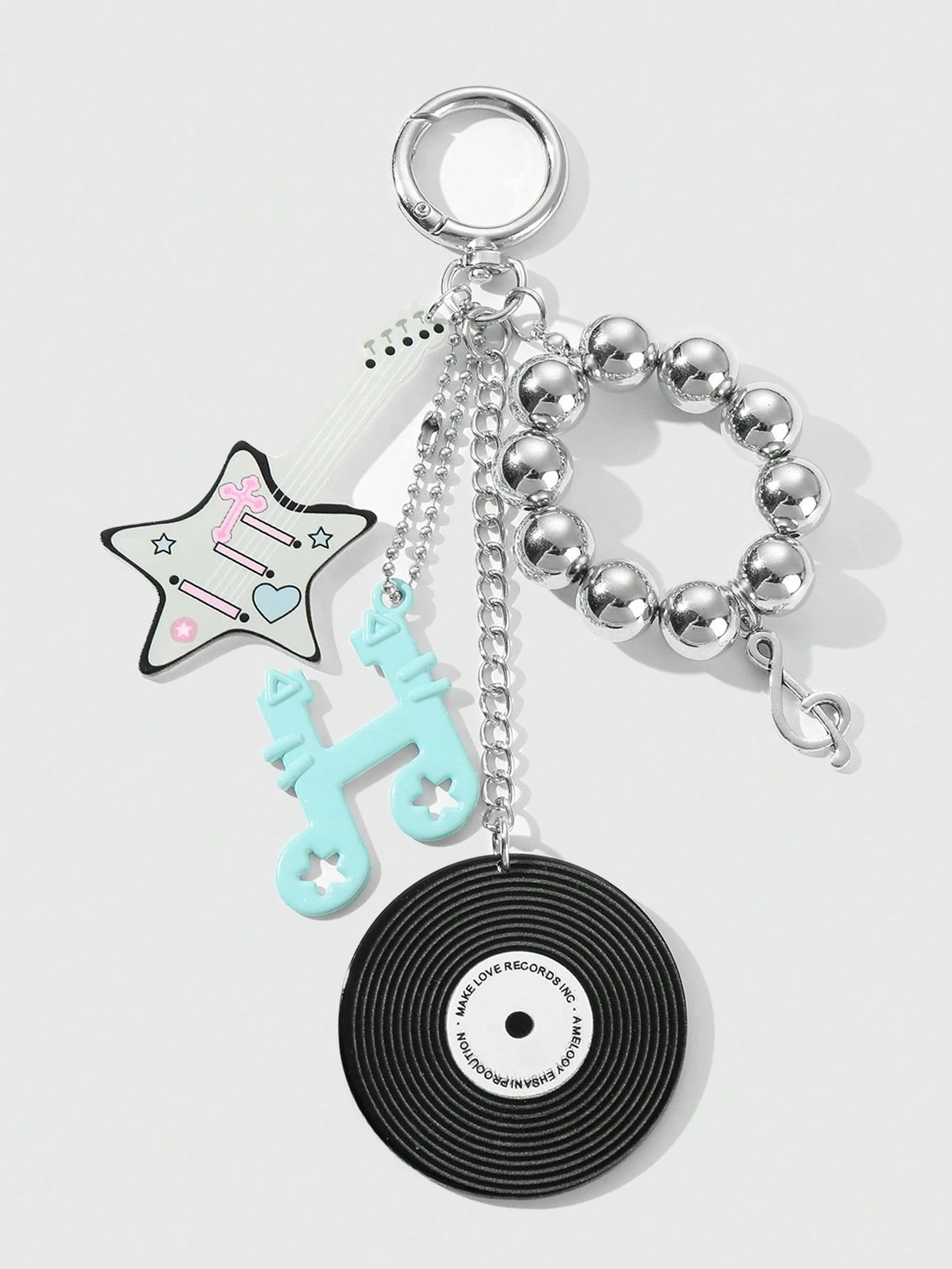 Kawaii 1pc Y2K Retro High-End Music Festival Silver CCB Beaded Hollow Star & Music Note Acrylic Guitar Record DIY Keychain Bag Charm, Suitable For Women, Daily Wear, Holiday Gift