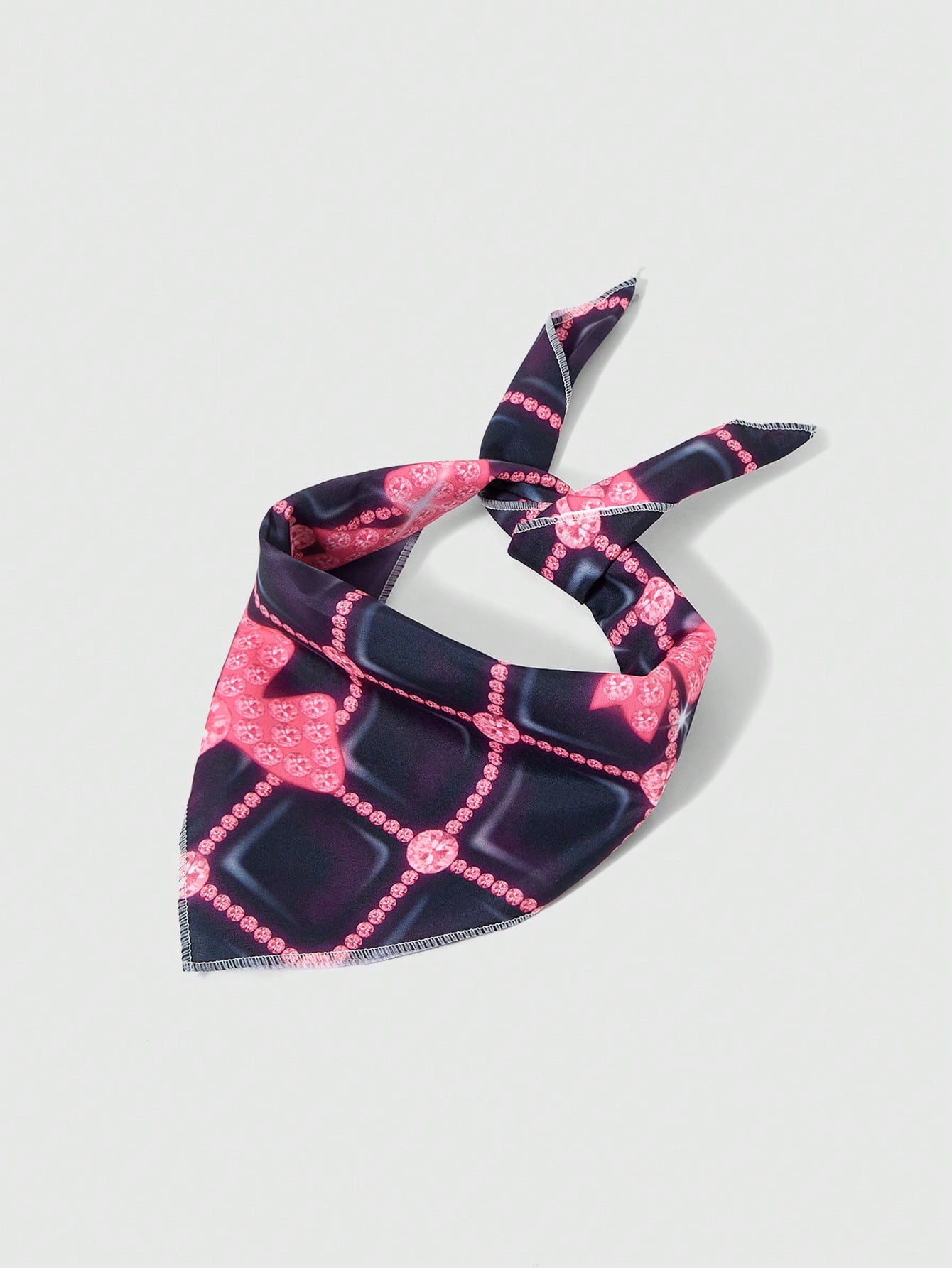 Kawaii 1pc Y2K-Style High Quality Diamond Lattice Pattern Cartoon Heart Rhinestone Print Small Square Scarf, Versatile Bandana & Bag Accessory