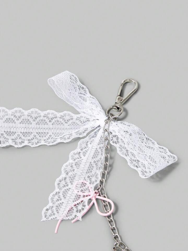 Kawaii 1pc Y2K Style Mother Of Pearl Cross, Pink Bow & Rhinestone Decor Chain Bag Pendant