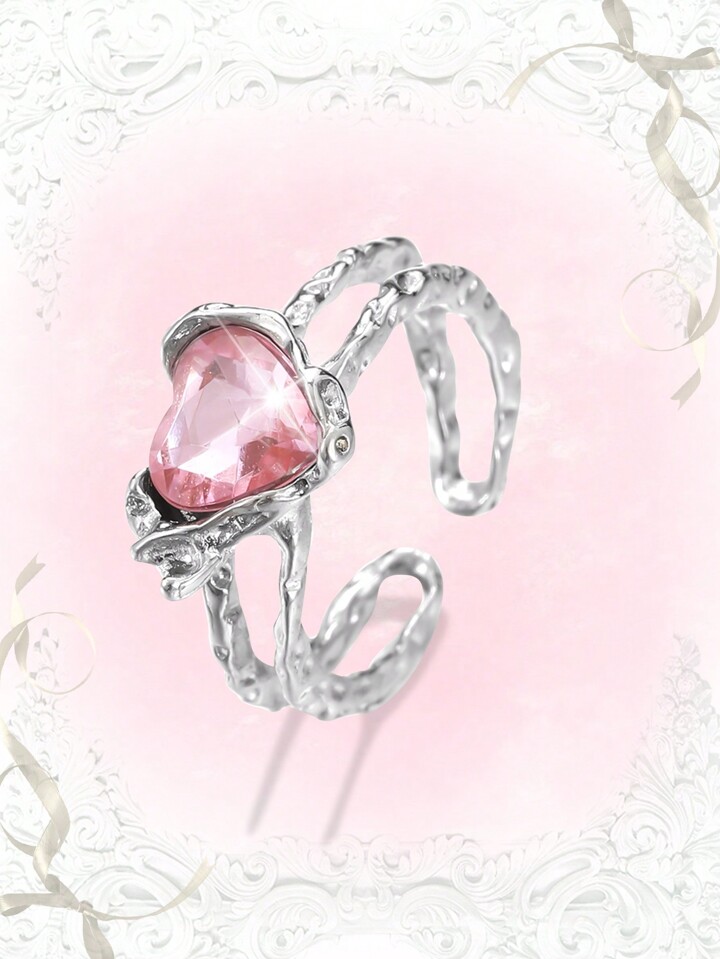 Kawaii 1pc Y2k Style Pink Heart Shaped Cubic Zirconia Ring