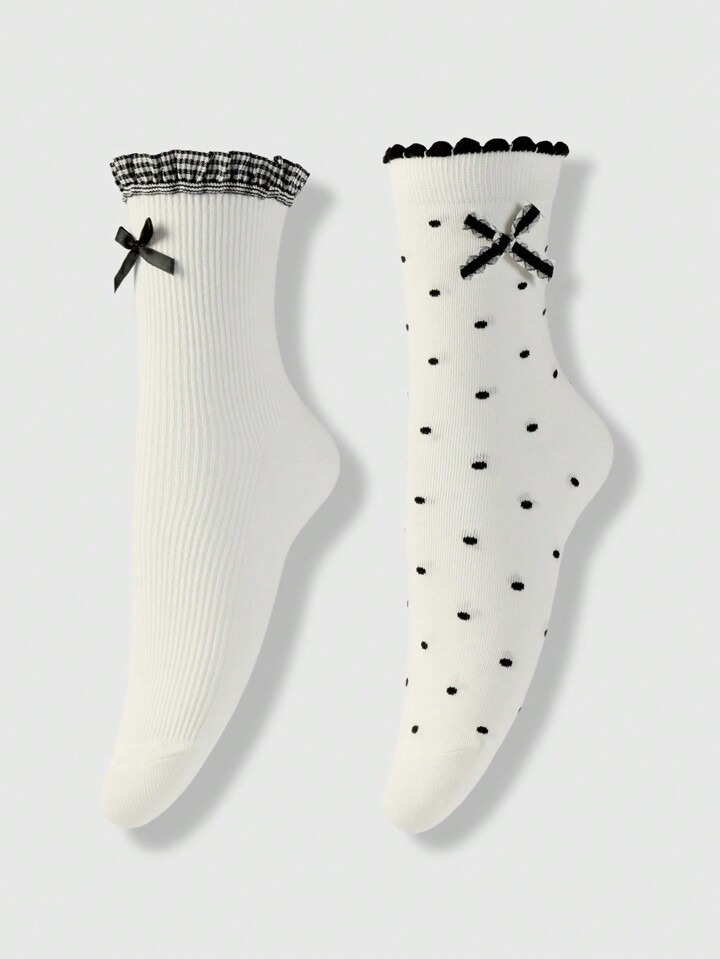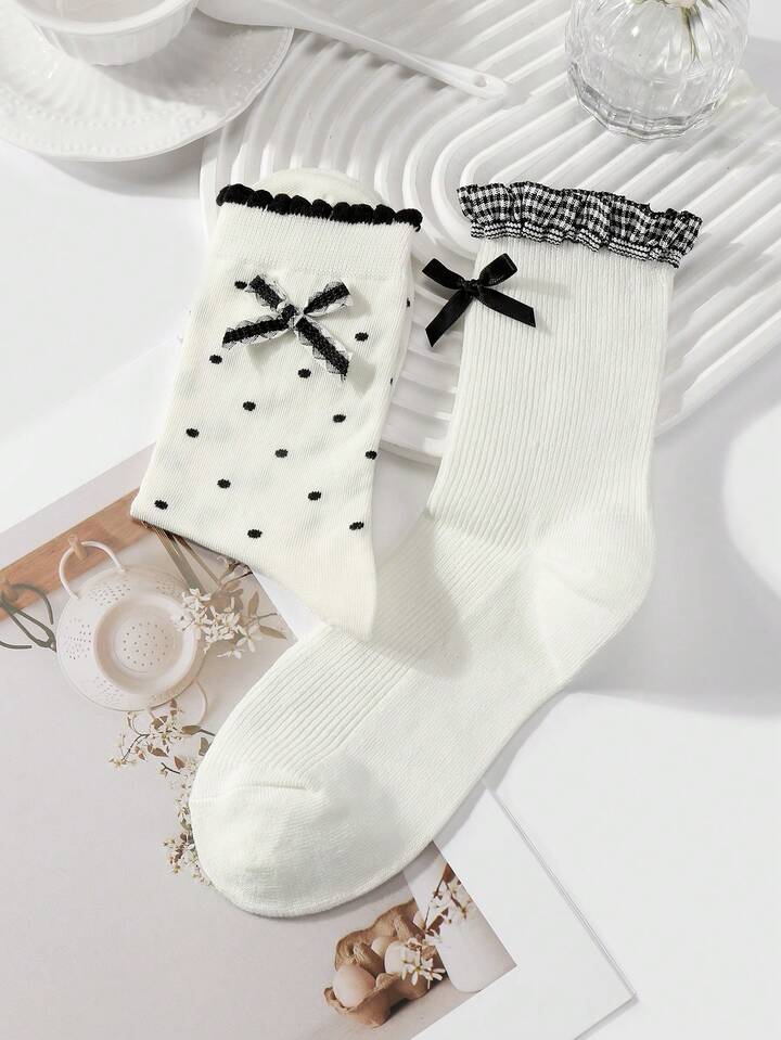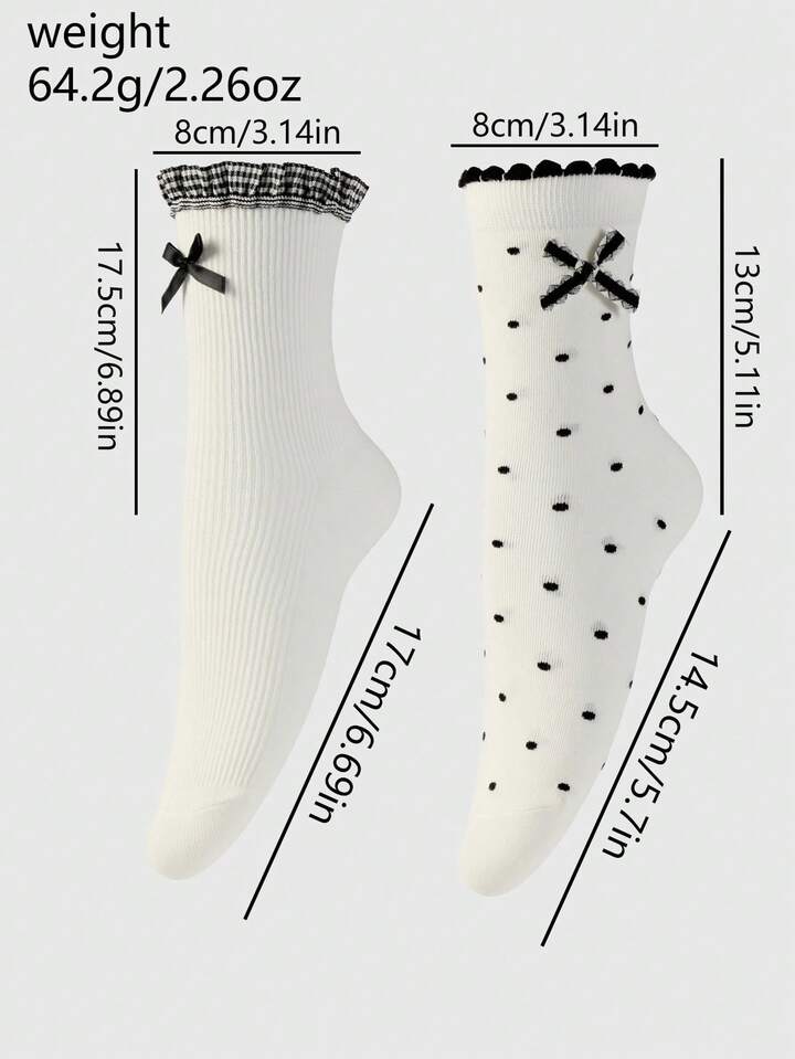 Kawaii 2 Pairs Of Chic Polka Dot & Ruffle Bow Soft, Warm Knee High Socks For Women, Stylish And Versatile, Ideal For Daily Wear, Comes In Gift Box Packaging