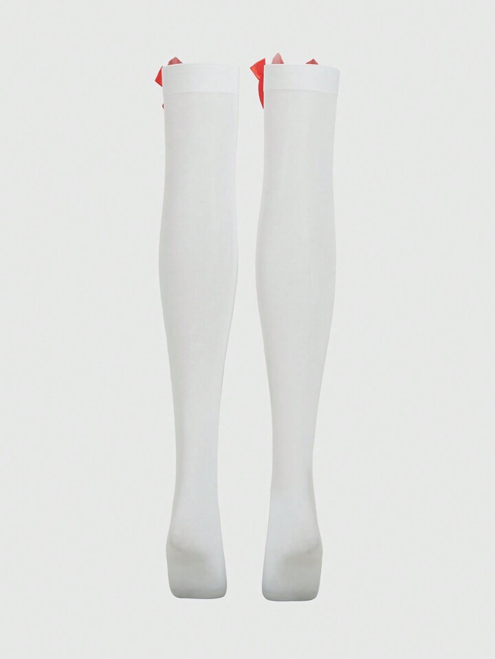 Kawaii 2 Pairs Women Bow Decorated Black & White Nylon Thigh High Socks, All Season