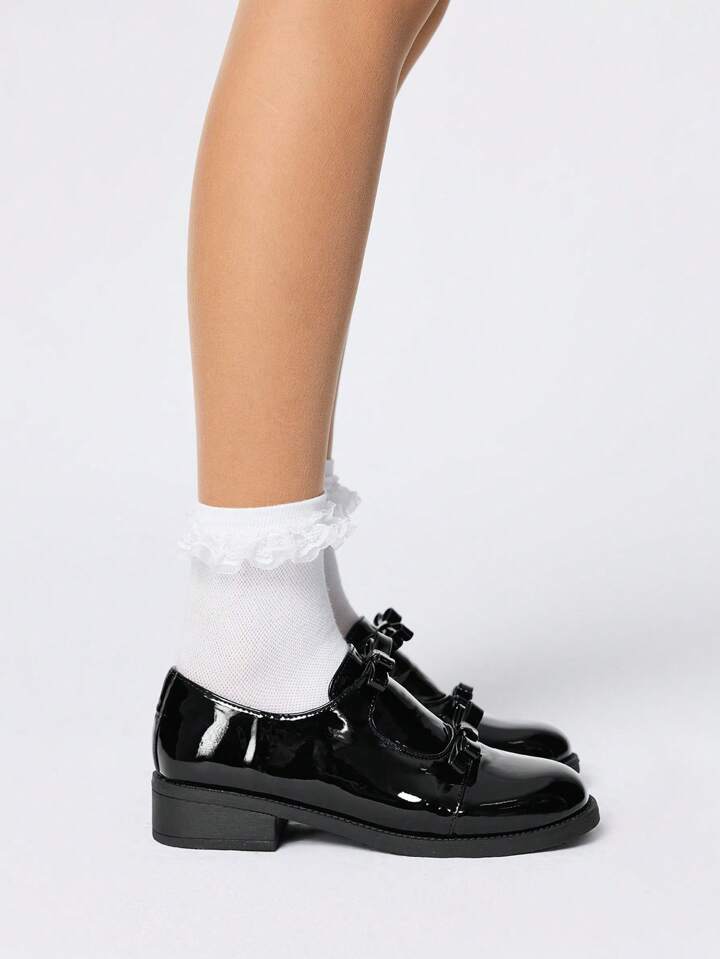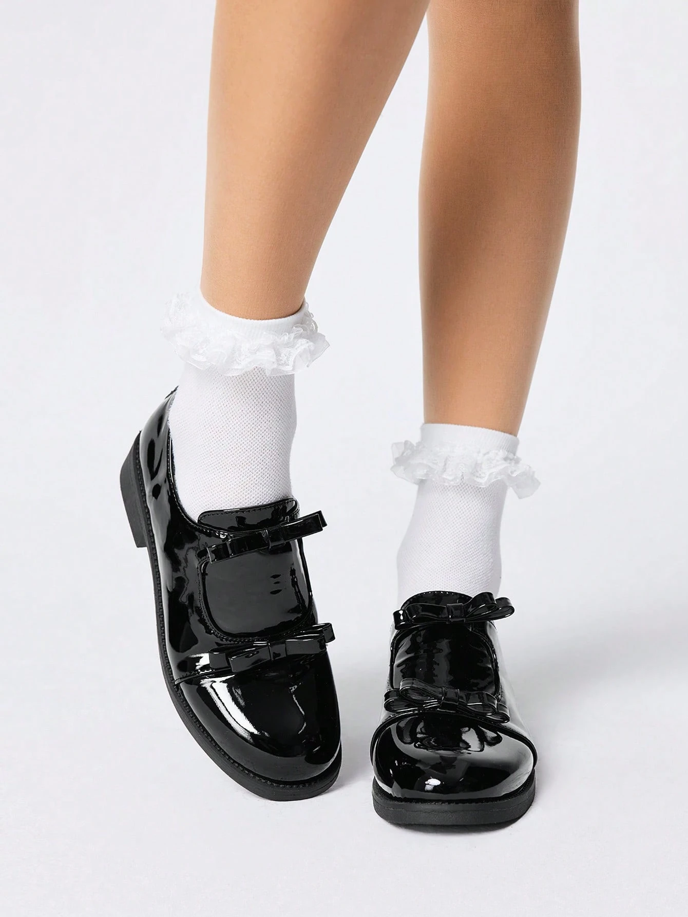 Kawaii 2025 New Arrival Women's Slip-On Flats, PU Leather Bow Accent Oxfords, Round Toe Low Heel Loafers, Black Color