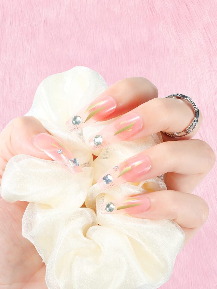 Kawaii 24pcs Coffin 3D Rhinestone Decor Fake Nail & 1sheet Tape