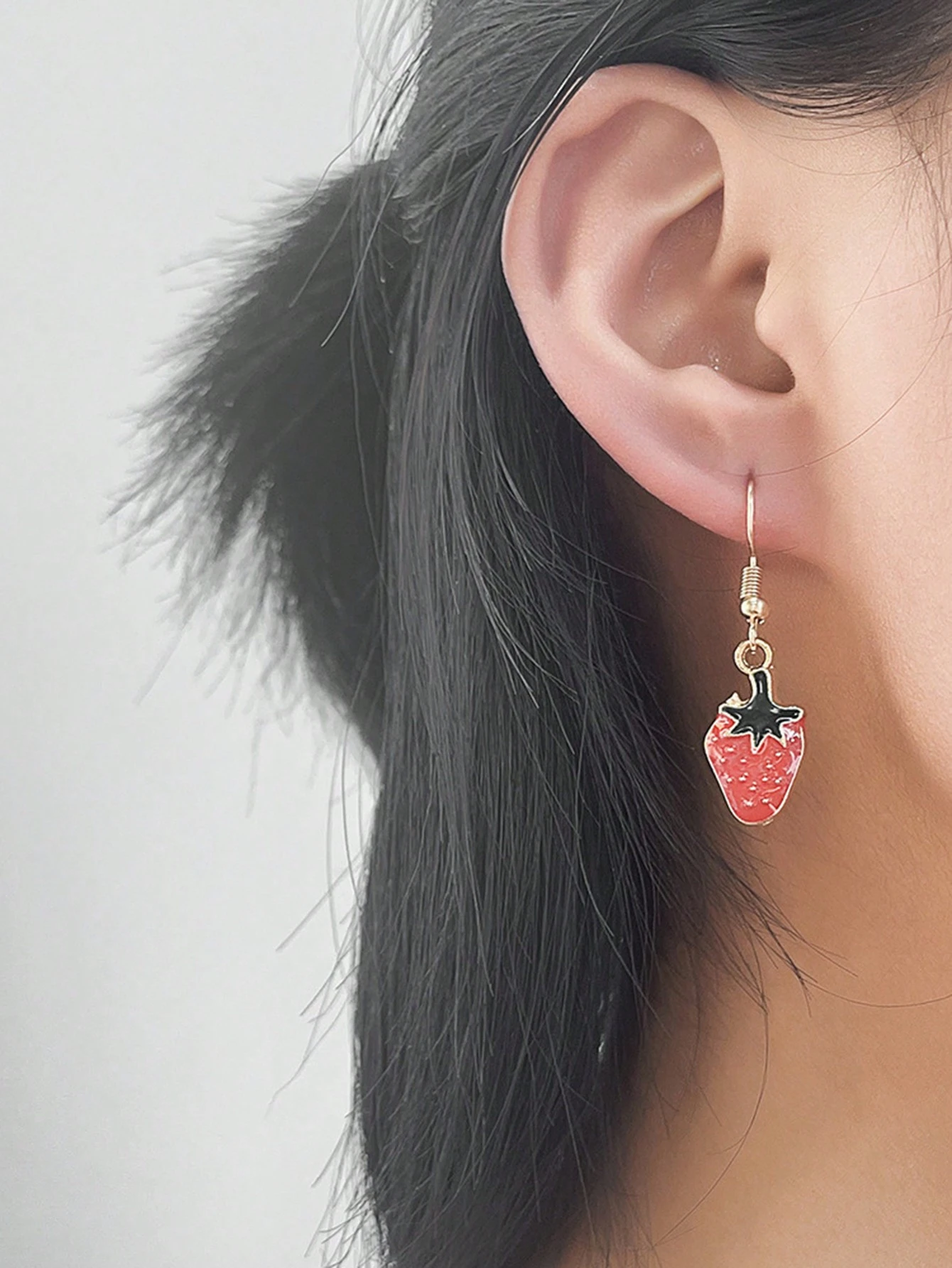 Kawaii 2pcs Cute Iron Alloy Strawberry Drop Earrings For Women For Daily Decoration