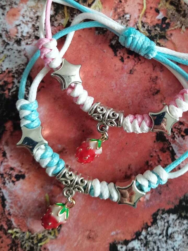 Kawaii 2pcs Cute Star & Strawberry Charm Bracelet For Couple For Daily Decoration