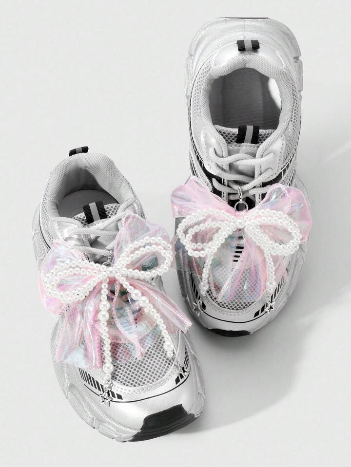 Kawaii 2pcs Fashionable Handmade Beaded White Faux Pearl & Colorful Bowknot Star DIY Shoe Clips, Versatile Accessory Set Suitable For Women, Great For Daily Wear And Gifts