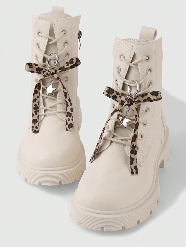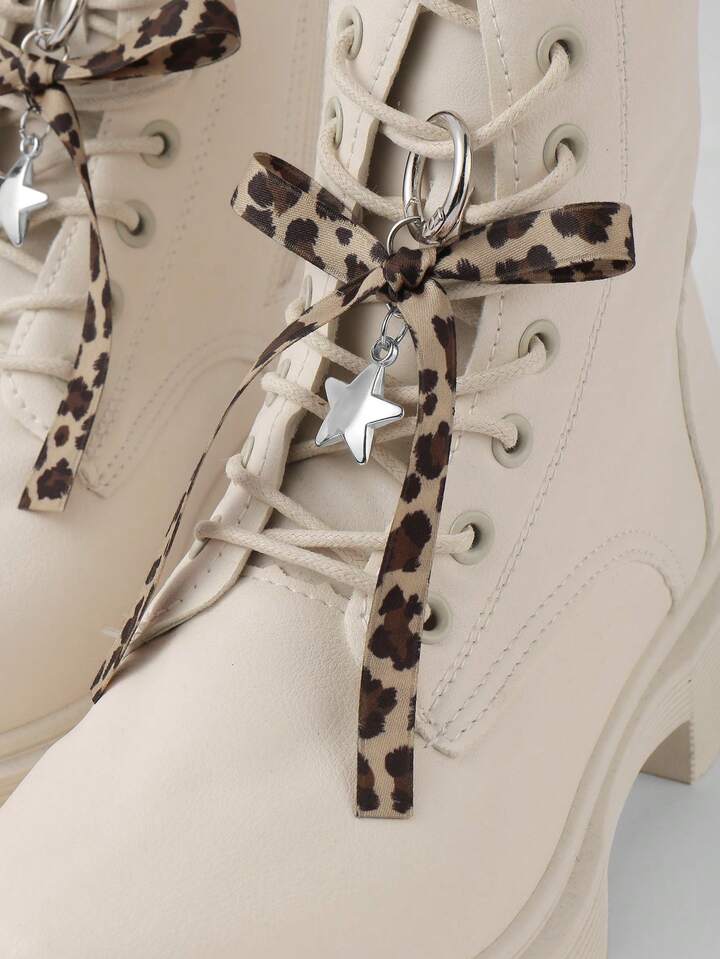Kawaii 2pcs Fashionable Korean Style Leopard Bow, Star Pendant, Shoe Buckle Decoration Set, Suitable For Women/Girls Everyday Wear, Gift For Holidays