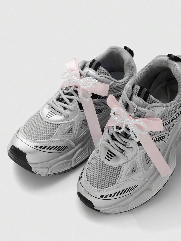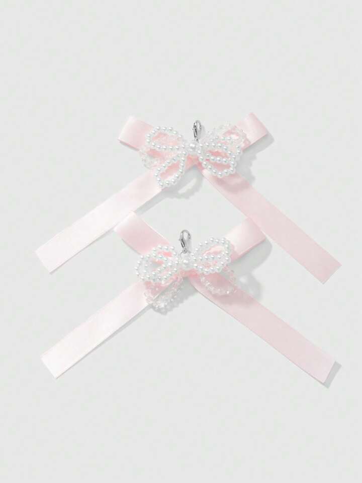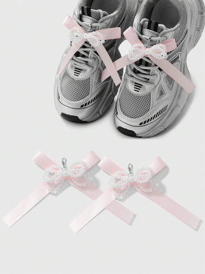 Kawaii 2pcs Minimalist Handmade Beaded White Pearl & Crystal-Look Bowknot Shoe Clips/Decorations, Fashion Versatile Accessory Set, Suitable For Women As Daily Wear Or Gift