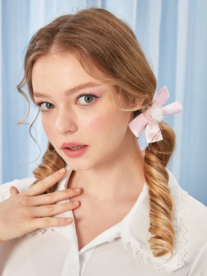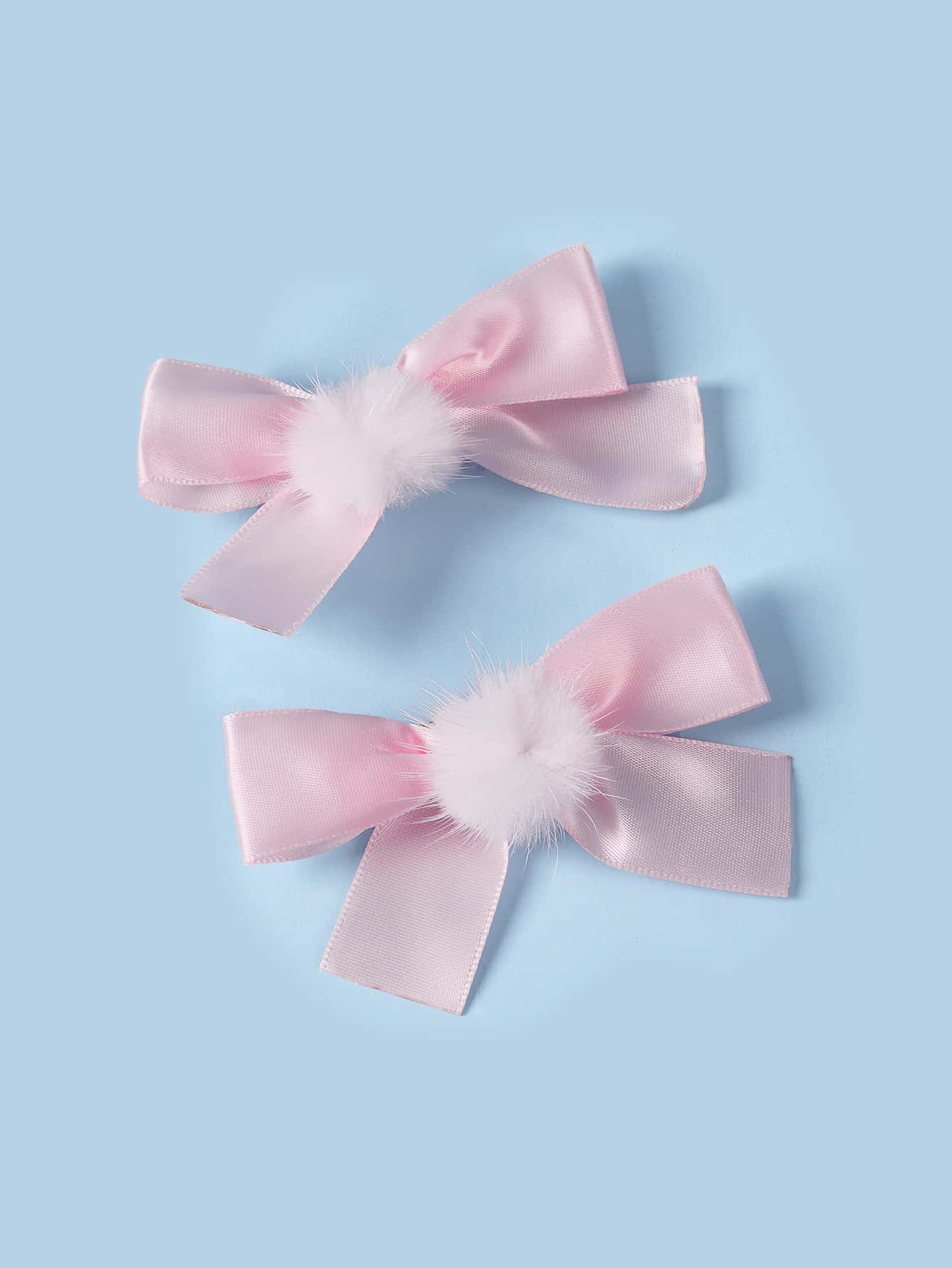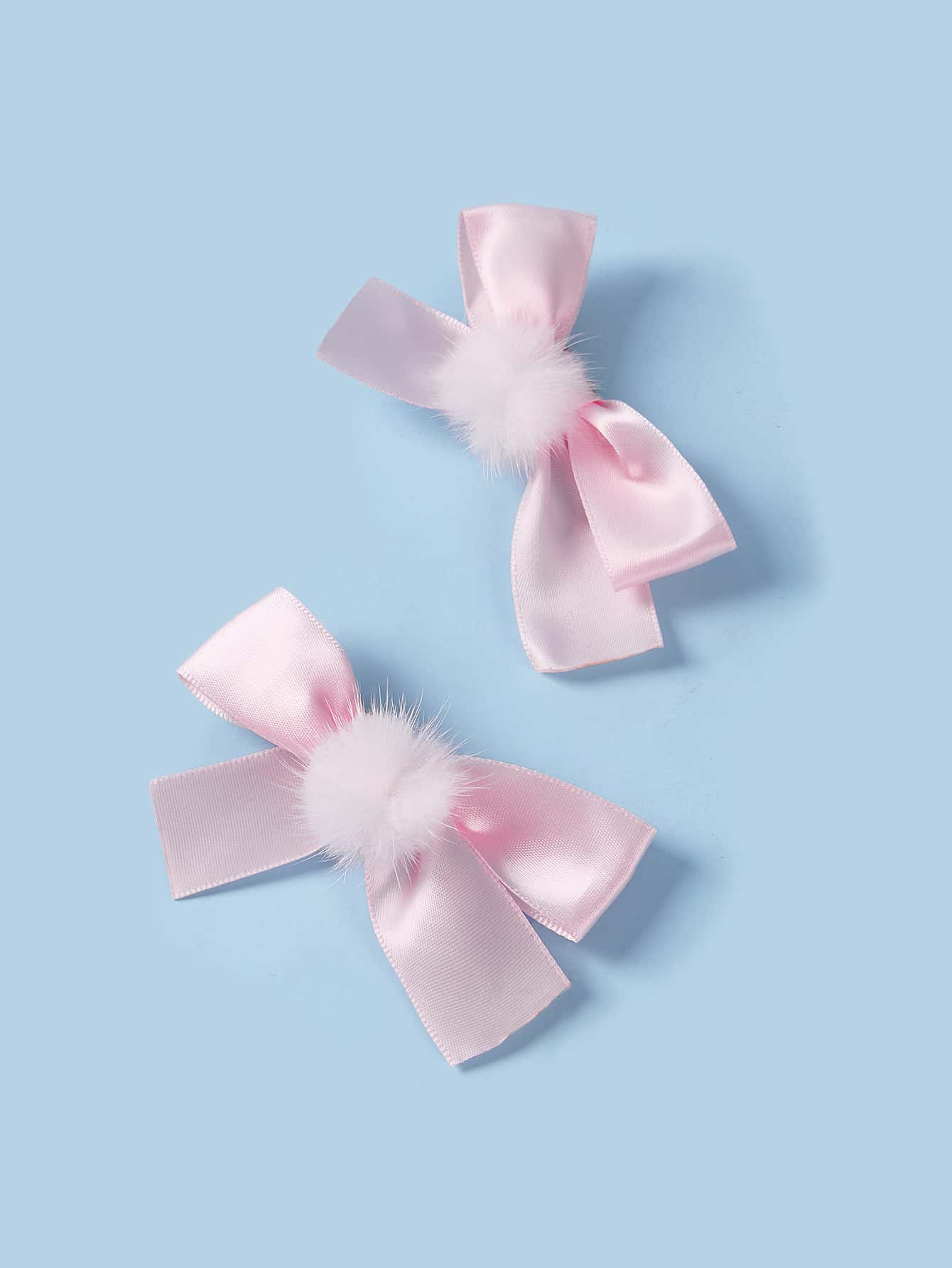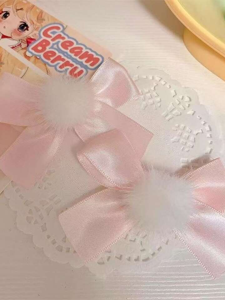 Kawaii 2pcs Pom Pom & Bow Decor Hair Clip