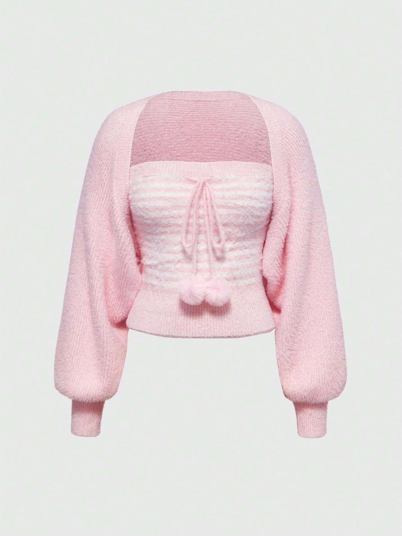 Kawaii 2pcs/Set Autumn/Winter Versatile White Aesthetic Sweet Girl Tube Top & Lantern Sleeve Sweater