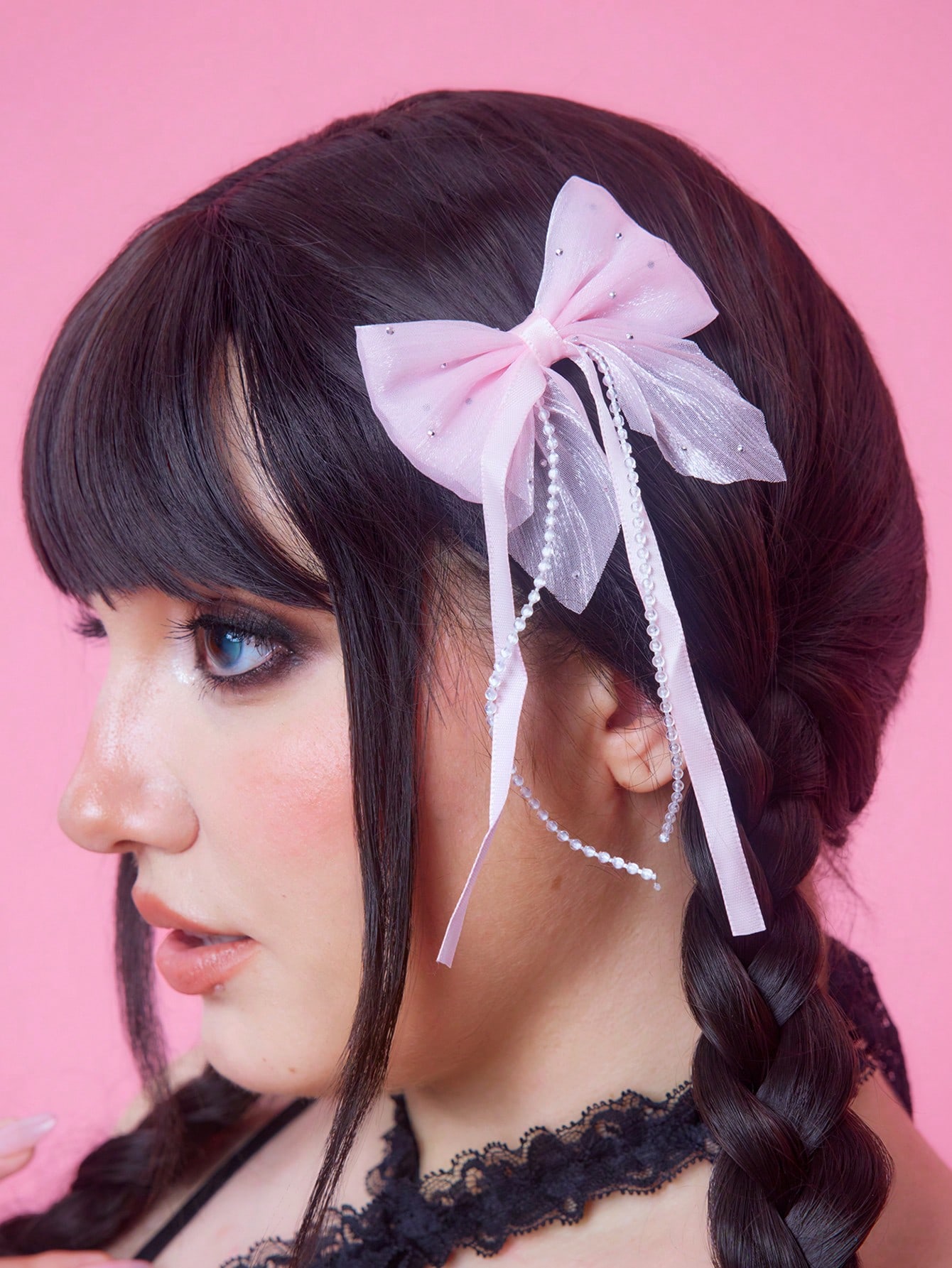 Kawaii 2pcs/Set Cute Style Rhinestone Bow Accent Hair Clips, Sweet High Quality Solid Pink Duck Clip, Niche Design Fashionable Versatile Hair Accessories Claw Clips Hair Slide Hair Barrettes