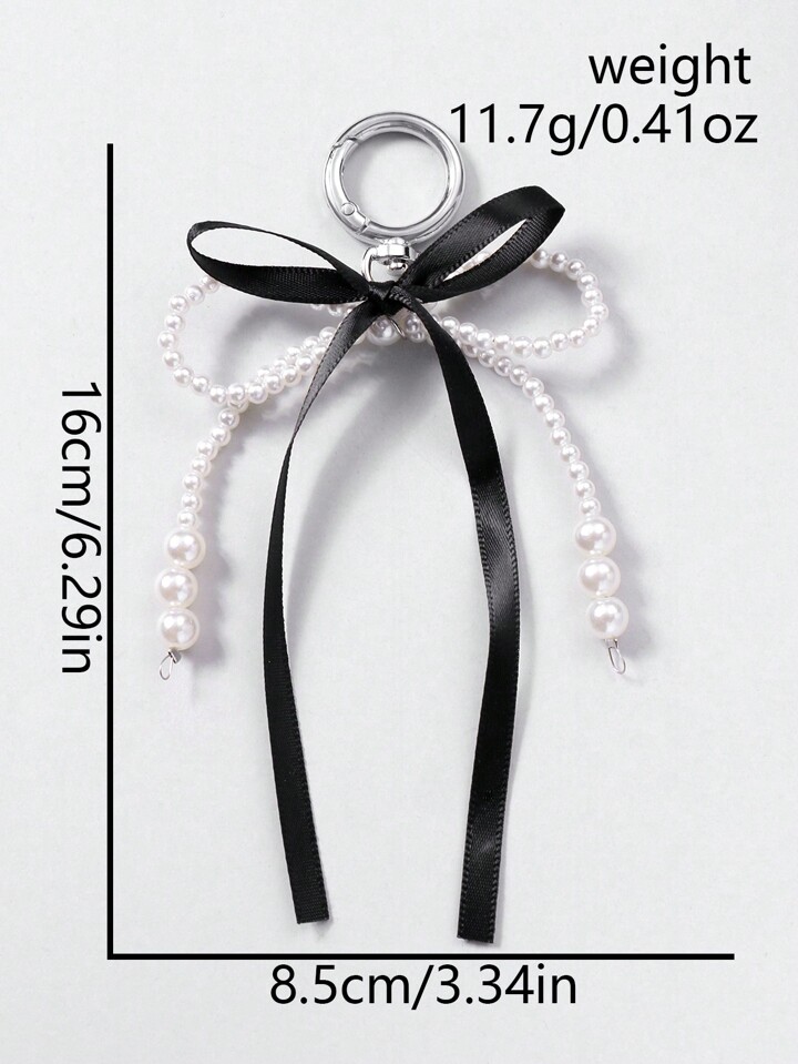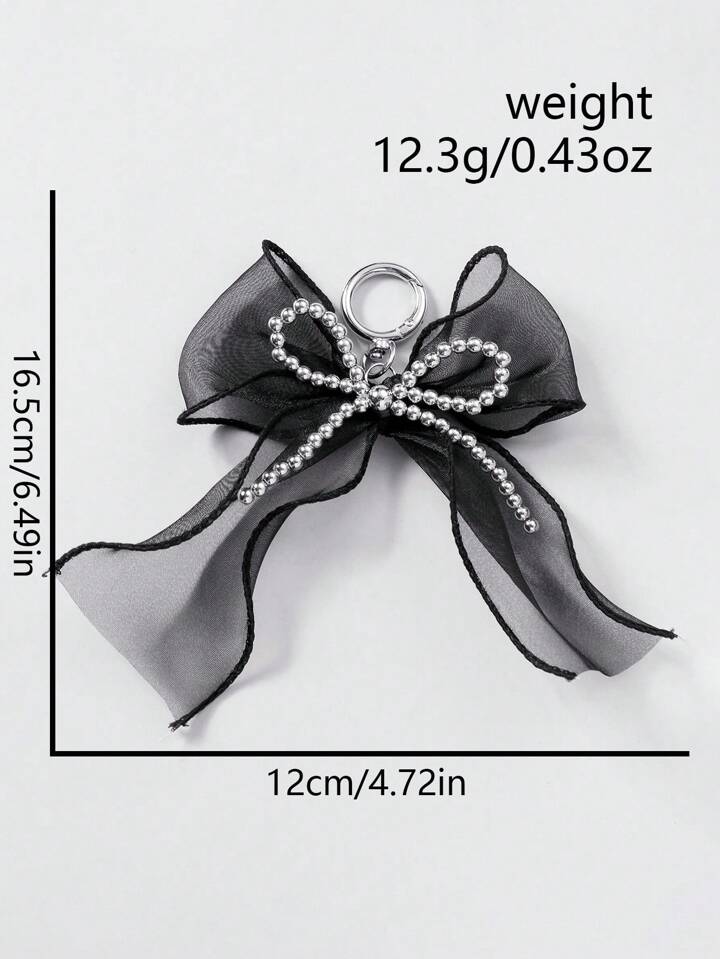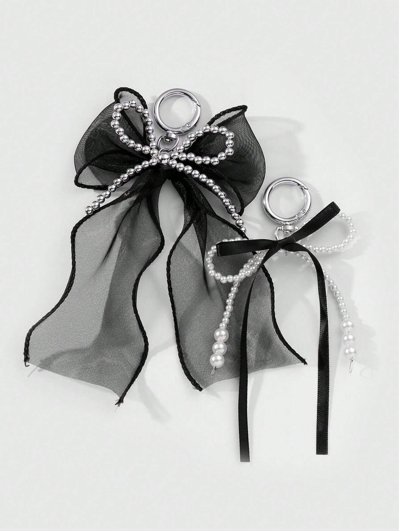 Kawaii 2pcs/Set Elegant Lace Net + Ribbon Pearl Butterfly Decor Key Chain Pendant, Gothic Accessories For Friends Women Gift