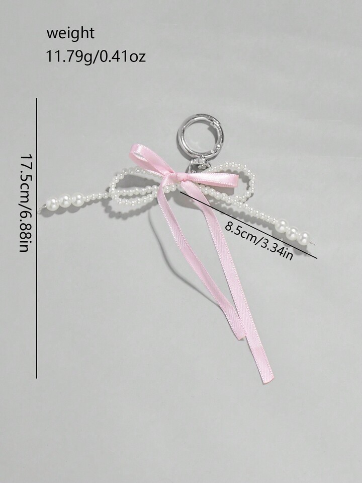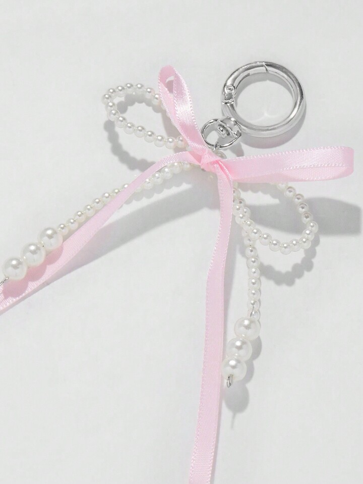 Kawaii 2pcs/Set Korean Style Cute & High-Quality Handmade Beaded White Faux Pearl Pink Ribbon Bowknot DIY Mobile Phone Lanyard Keychain Bag Charm, Gift Set With Anti-Lost Clips For Girls/Women, Perfect For Daily Wear And Holiday Gifts