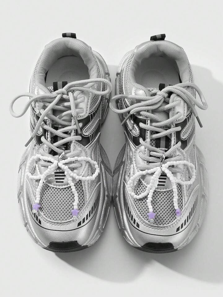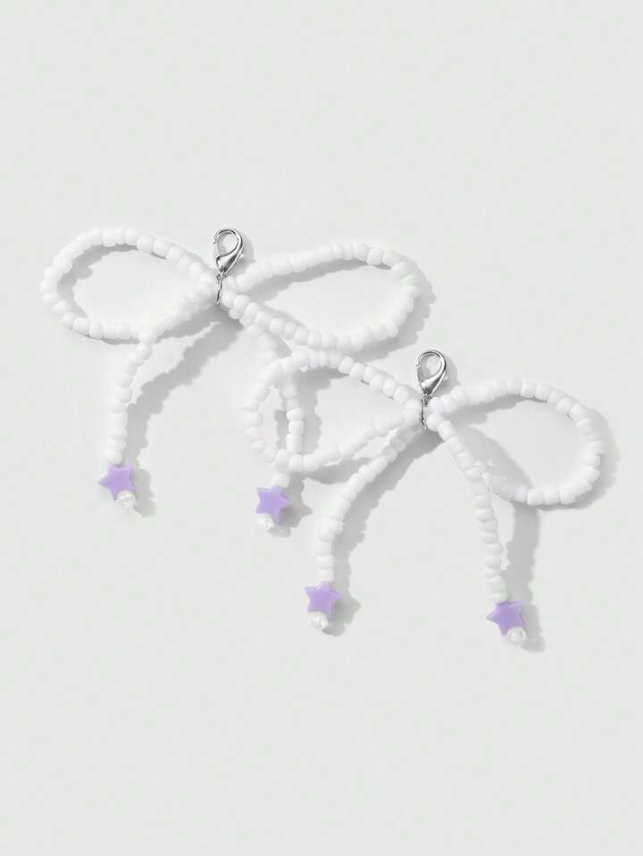 Kawaii 2pcs/Set Stylish Handmade Beaded White Pearl Star & Bow Shoe Clips, Versatile Fashion Accessories, DIY Decorations Suitable For Women, Gift For Her