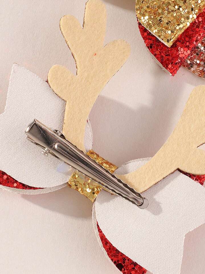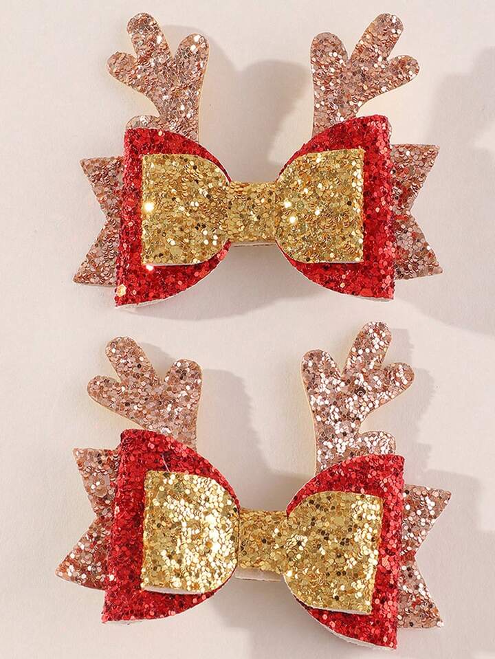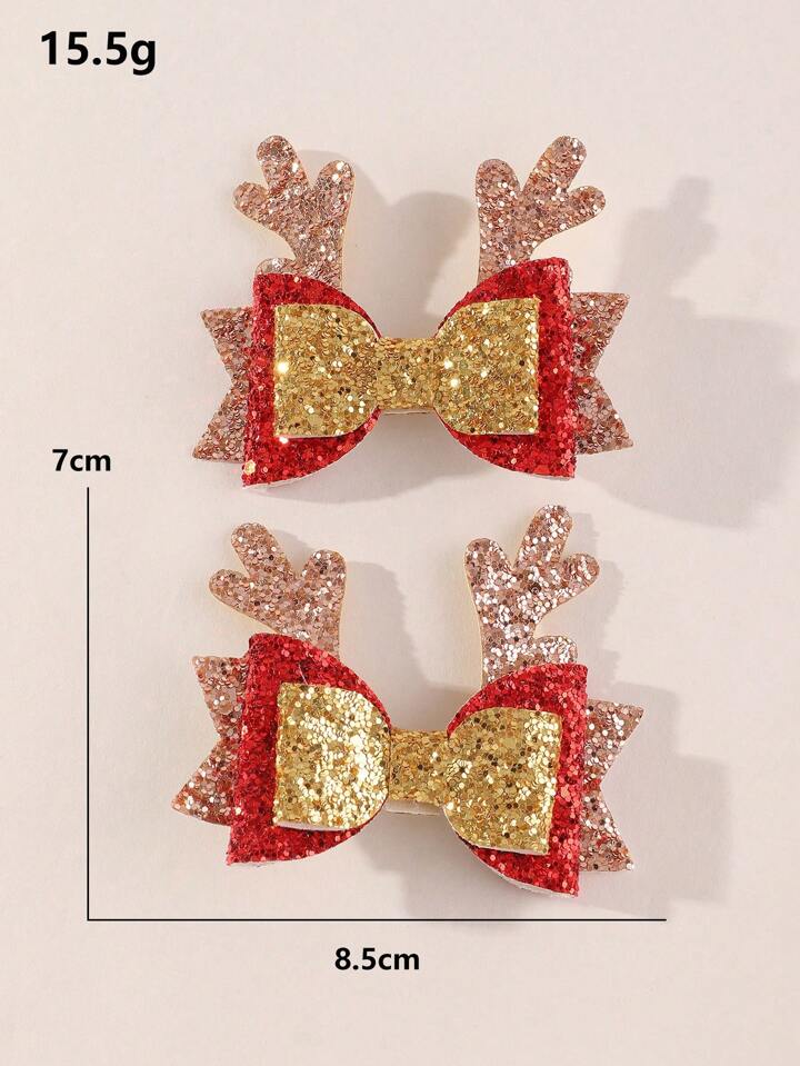 Kawaii 2pcs Women Christmas Antler & Bow Decor Alligator Hair Clip