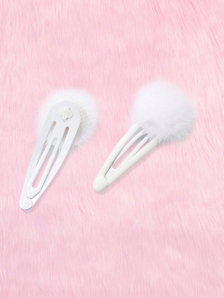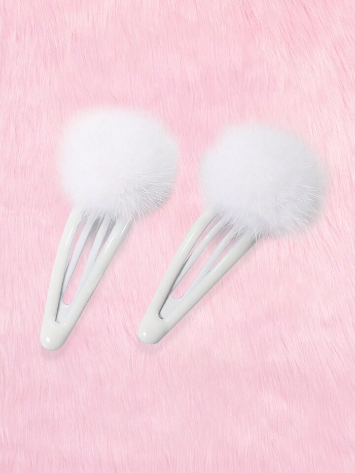 Kawaii 2pcs Women Pom Pom Decor Snap Clip