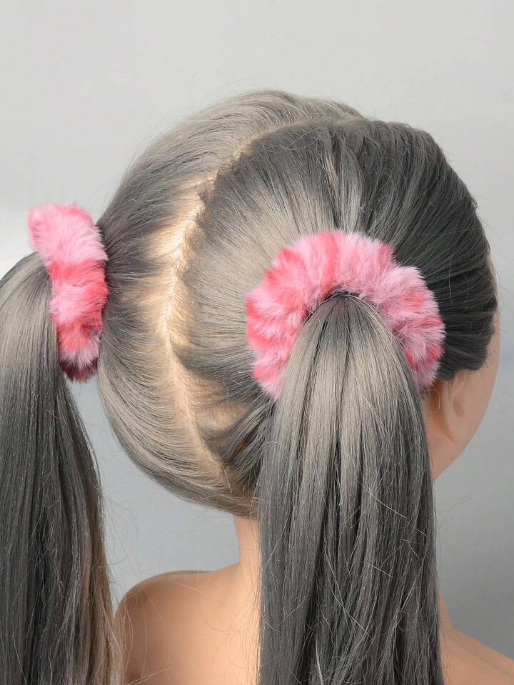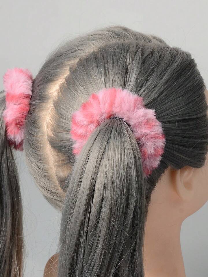 Kawaii 2pcs Women Solid Fuzzy Hair Tie