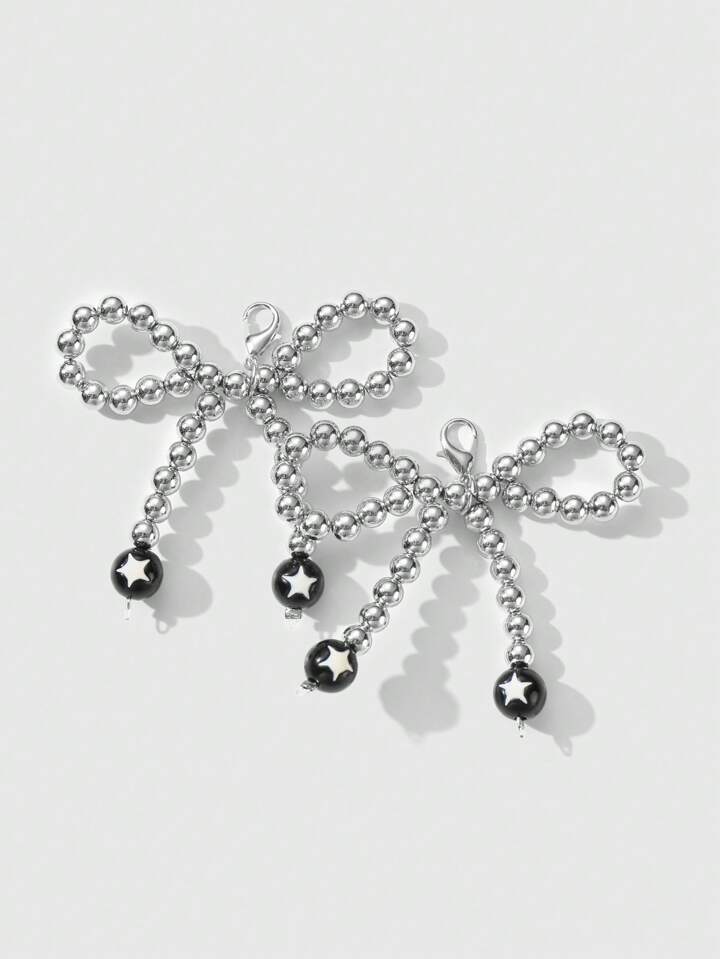 Kawaii 2pcs Y2K Luxury Handmade Beaded Silver CCB Star & Bow DIY Shoe Clips/Charms, Fashion Simple Elegant Decor Accessories, Suitable For Women & Girls, Great Gift For Festivals