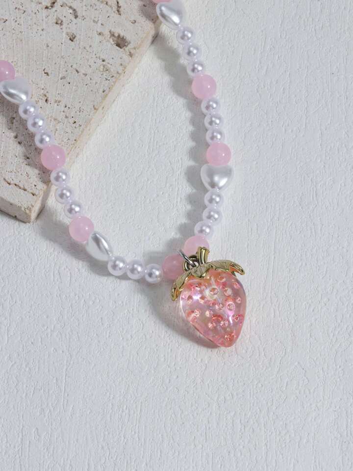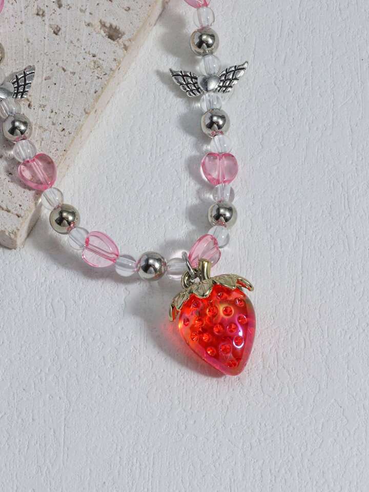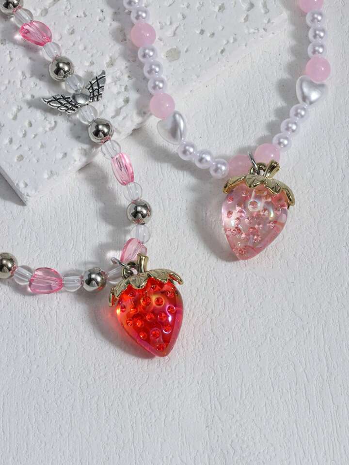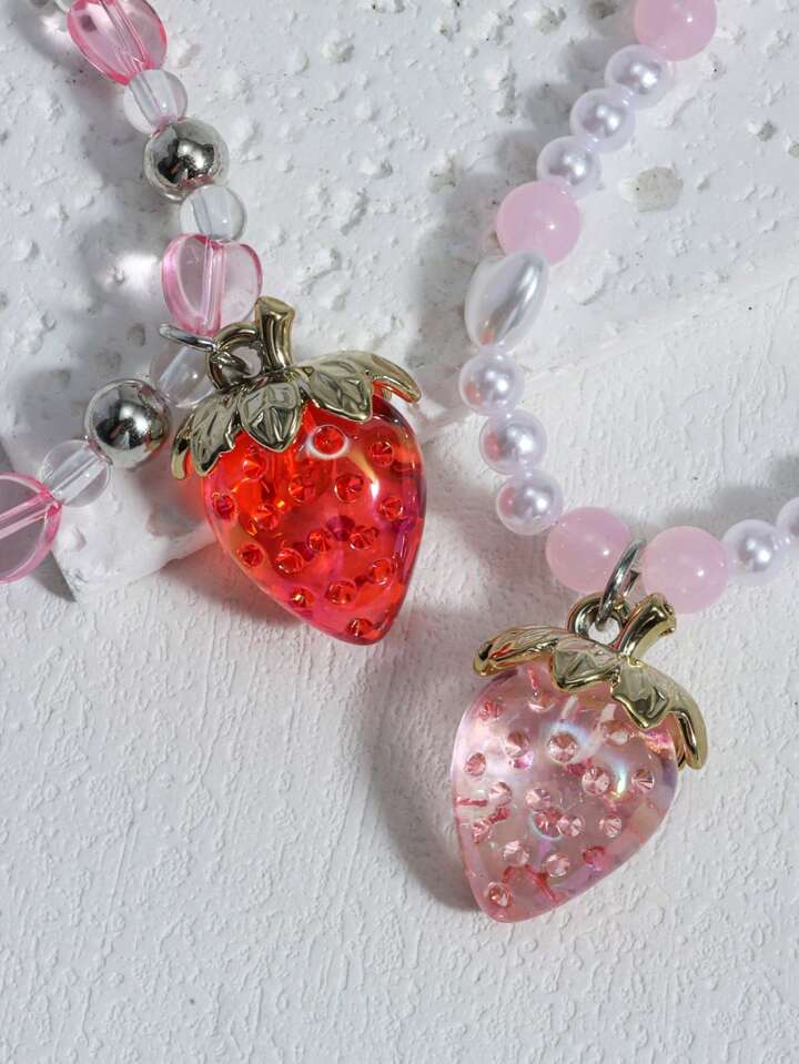 Kawaii 2pcs Y2K Style Cute Strawberry Beaded Necklace, Friendship Gift Or Birthday Present, Sweet Girl Daily Fashion Accessory