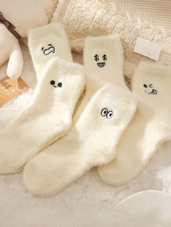 Kawaii 3pairs Random Expression Embroidery Crew Socks