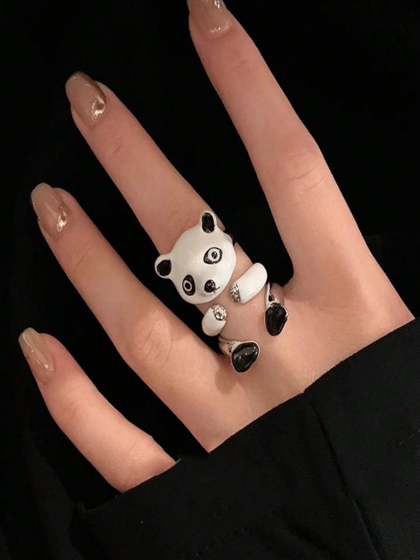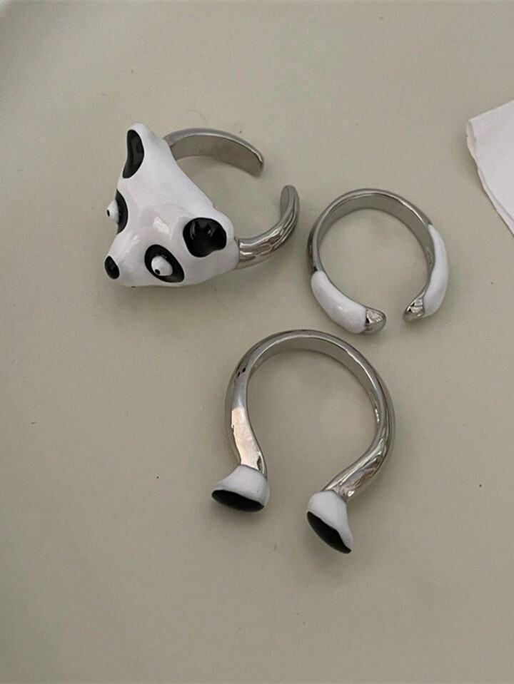 Kawaii 3pcs Cute Zinc Alloy Cartoon Panda Decor Cuff Ring For Women For Daily Decoration