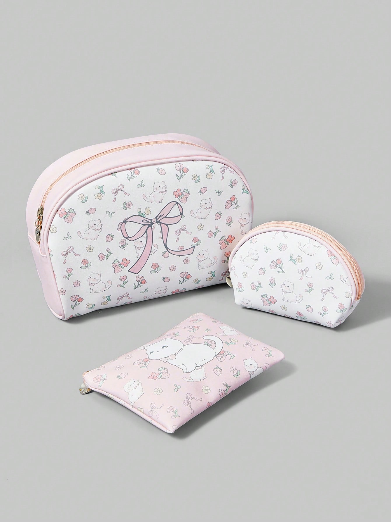 Kawaii 3pcs/Set Cute Cat Pattern Large Capacity Portable Cosmetic Makeup Bags