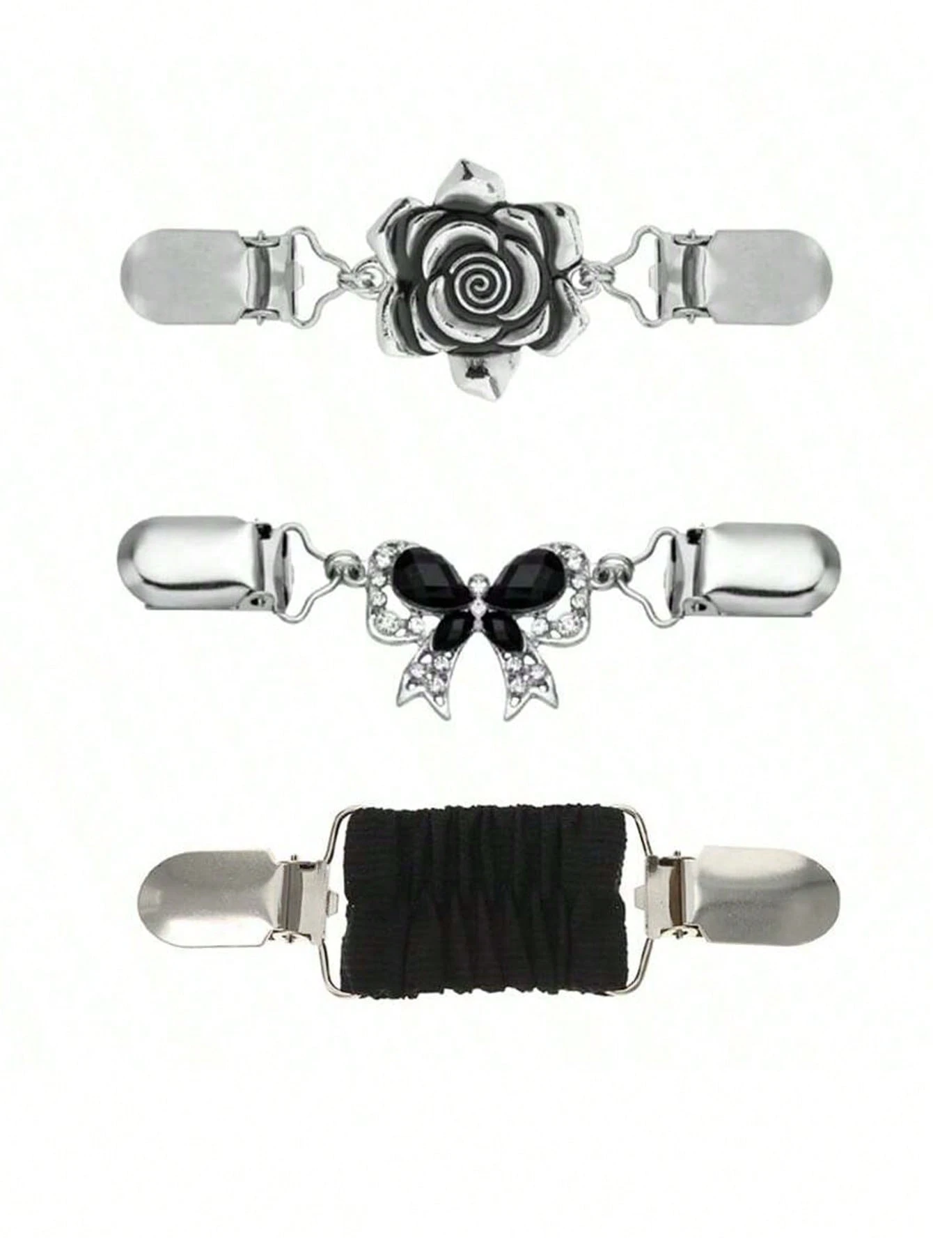 Kawaii 3pcs Vintage Elastic Shawl Clips, Cardigan Clips, Suitable For Dresses, Pants Back, Waist Cincher, Women Brooch Clips
