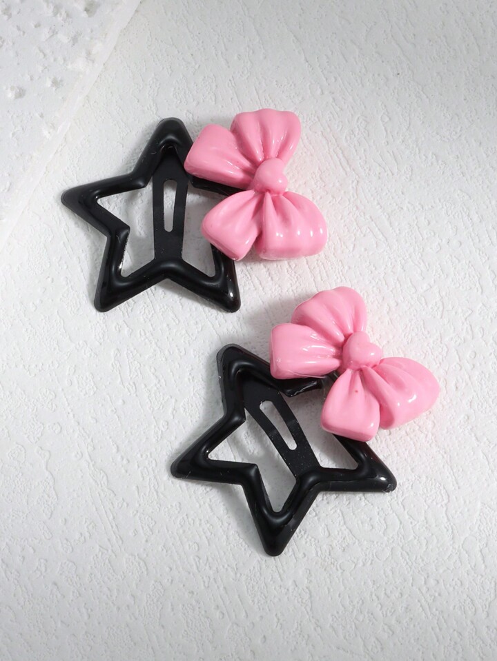 4pcs Kawaii Pink Bow & Star Design Hair Clips, Everyday Wear, Back To School Season Valentines Claw Clips Hair Claws Hair Barrettes
