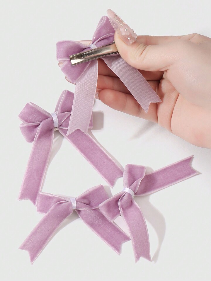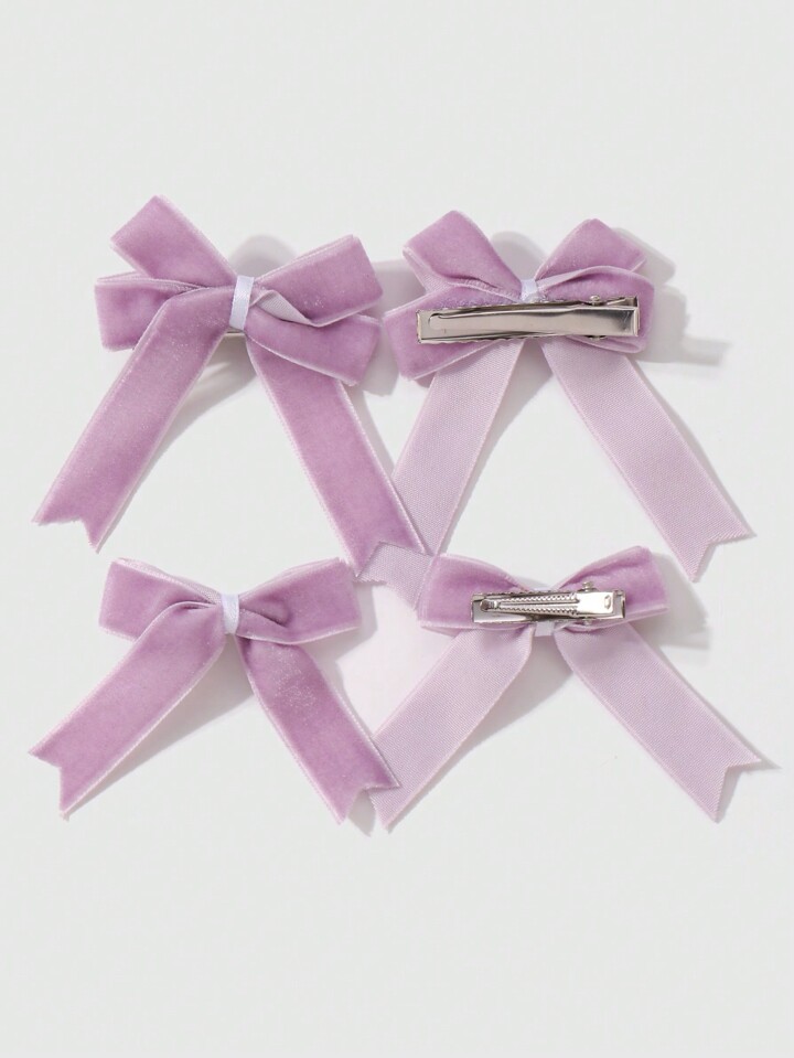 Kawaii 4pcs/Set Vintage Purple Velvet Bow Double-Layer Butterfly Hair Clips, Fashionable & Versatile Accessories, Suitable For Women & Girls, Great Gift For Holidays