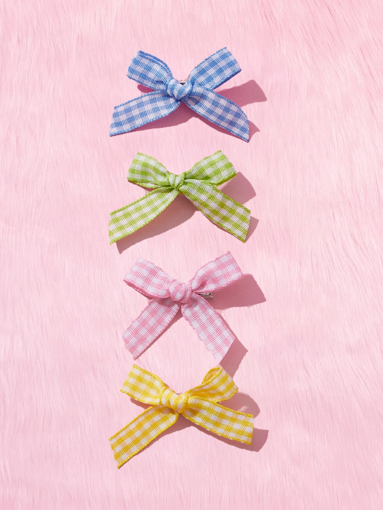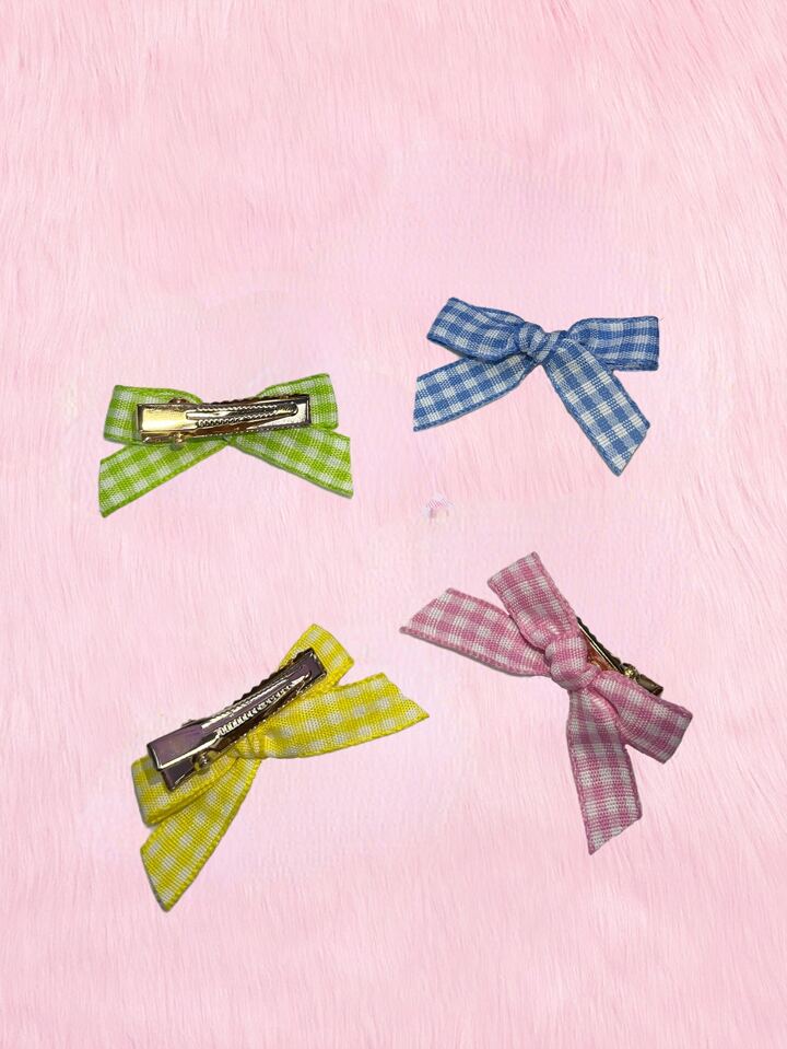 Kawaii 4pcs Women Plaid Pattern Sweet Style Hair Clip