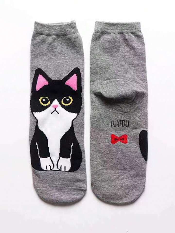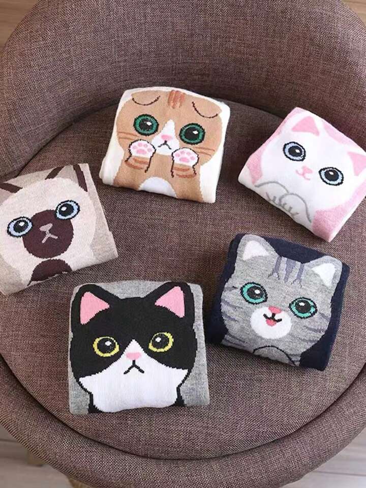 Kawaii 5pairs Women's Cute Cat Pattern Ankle Socks