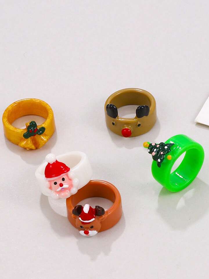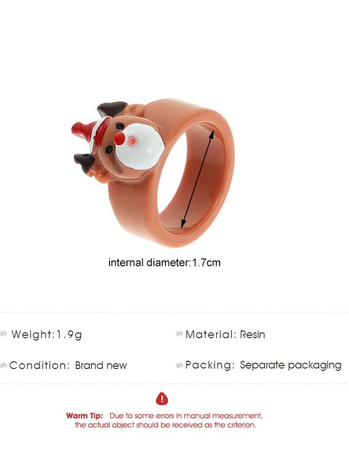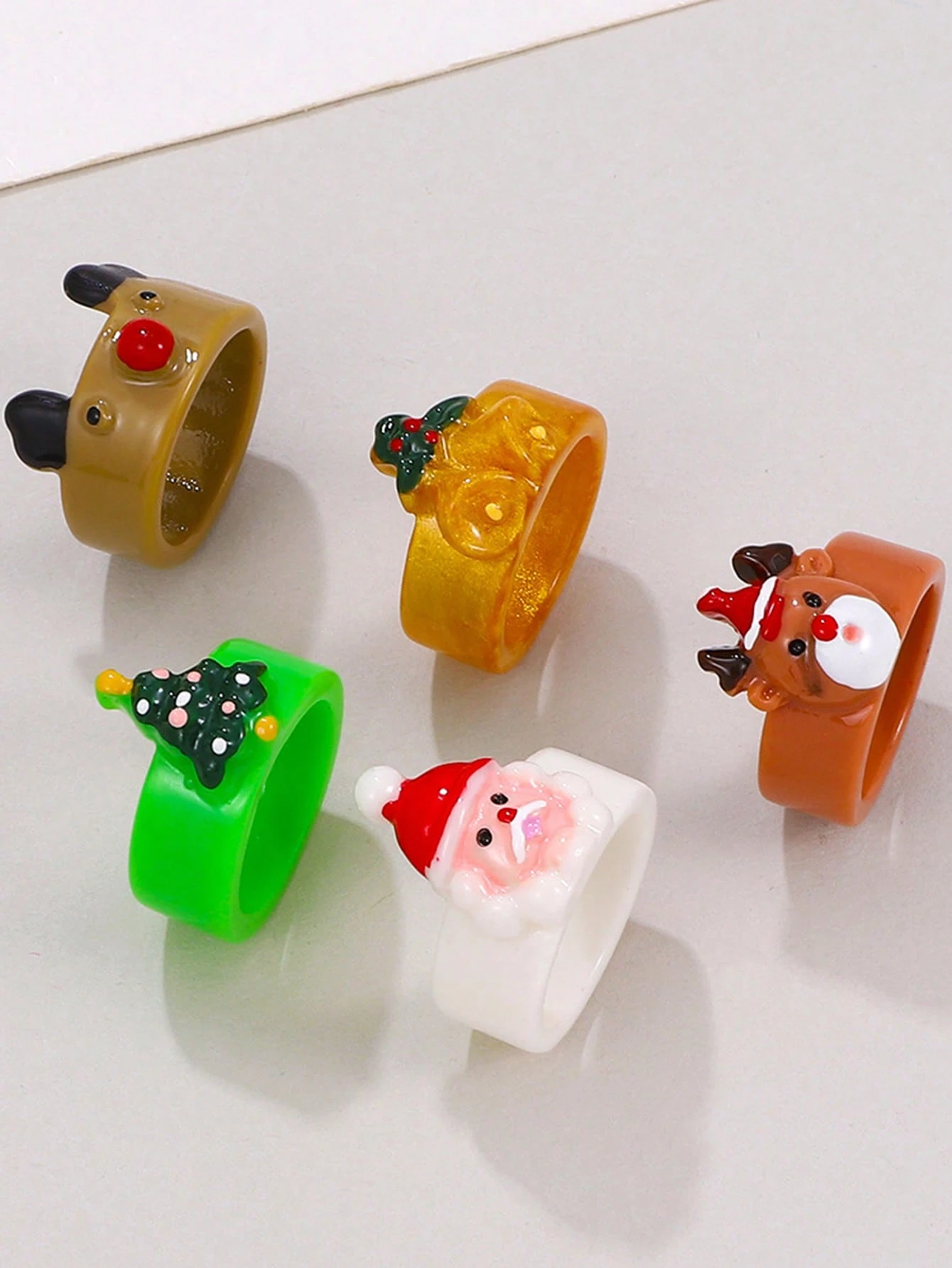 Kawaii 5pcs Cartoon Animal Detail Christmas Ring