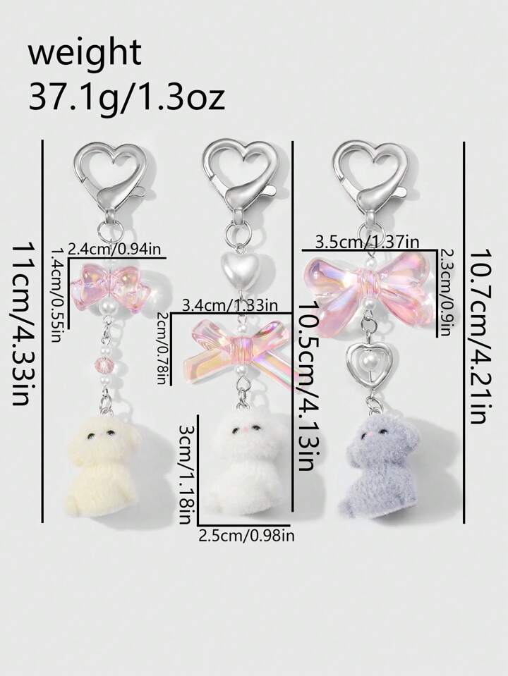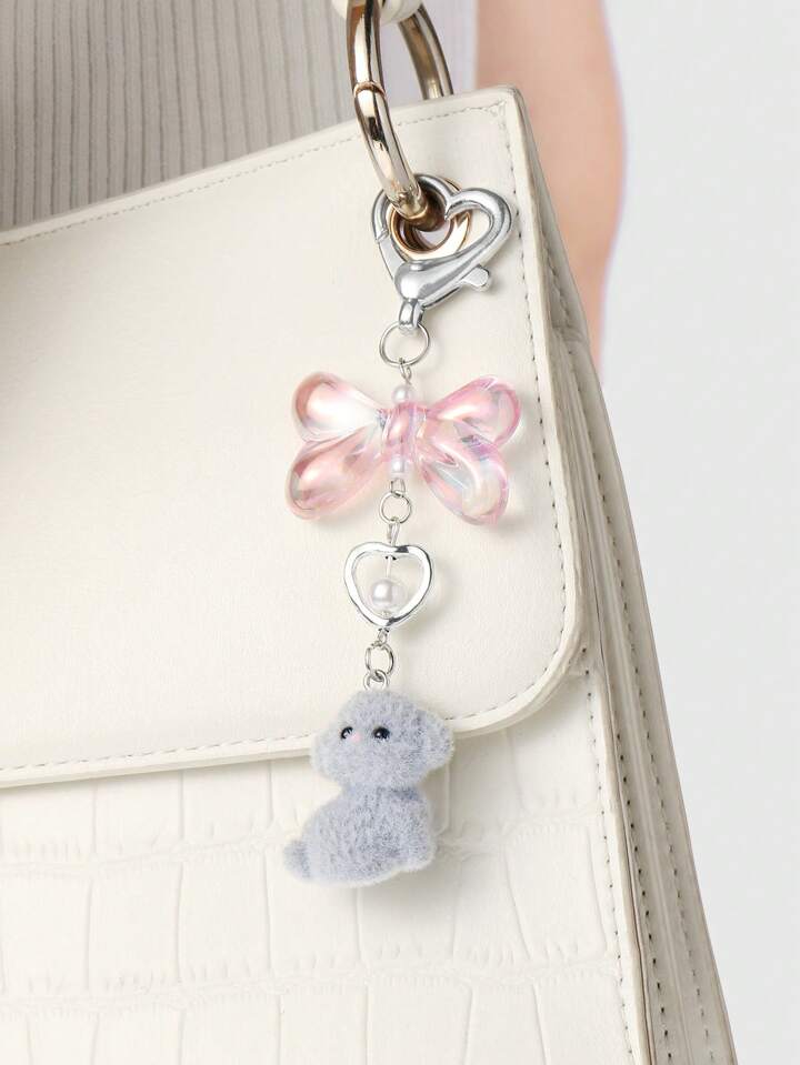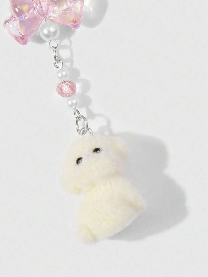 Kawaii 6pcs Set Cute Fancy Fashion Sweet High-Quality Pearl Bowknot Resin Dog Charm + Transparent Phone Card DIY Phone Hanging Decoration, Key Chain, Bag Pendant Combo Set, Suitable For Sisters, Friends, Women As Daily Wear Or Holiday Gift
