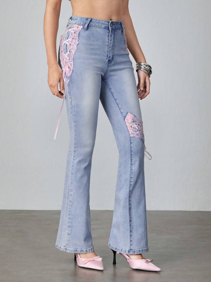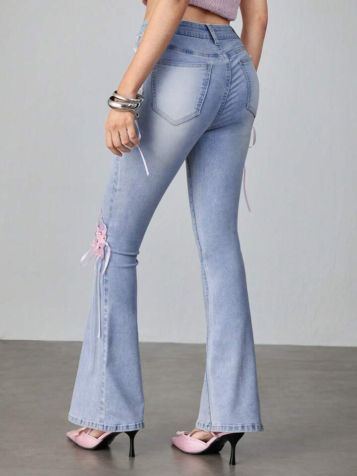 Kawaii Adorable Sweet Lace Decor Drawstring Women's Jeans