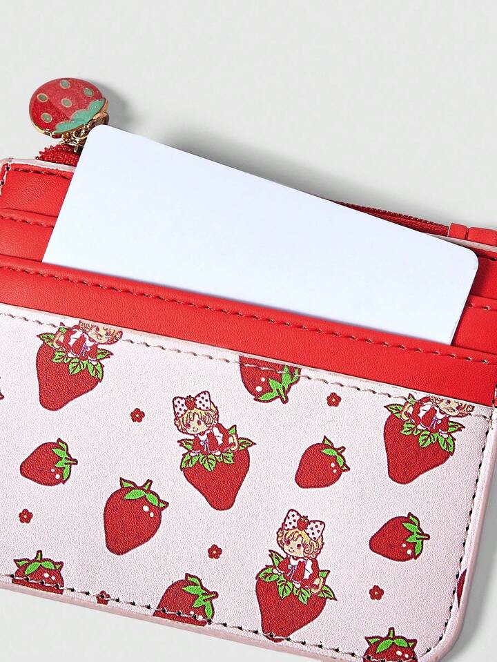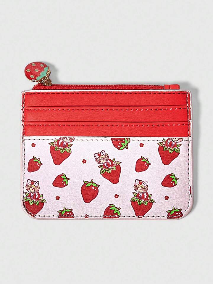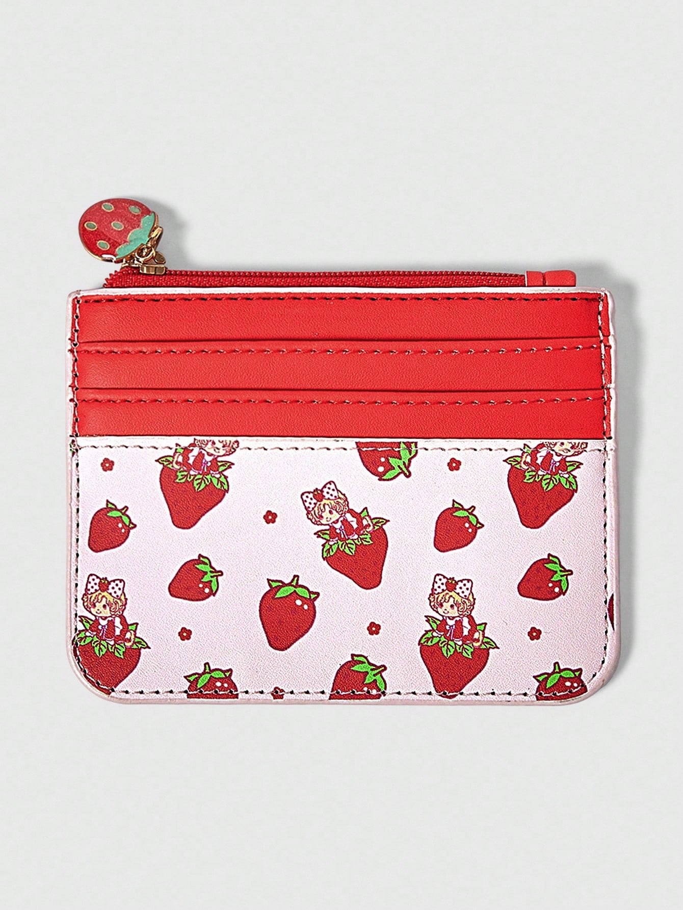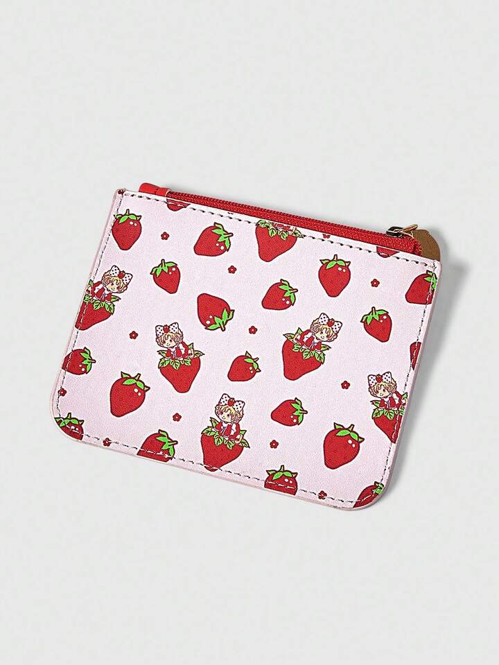Kawaii All-Over Strawberry Print Card Holder & Coin Purse