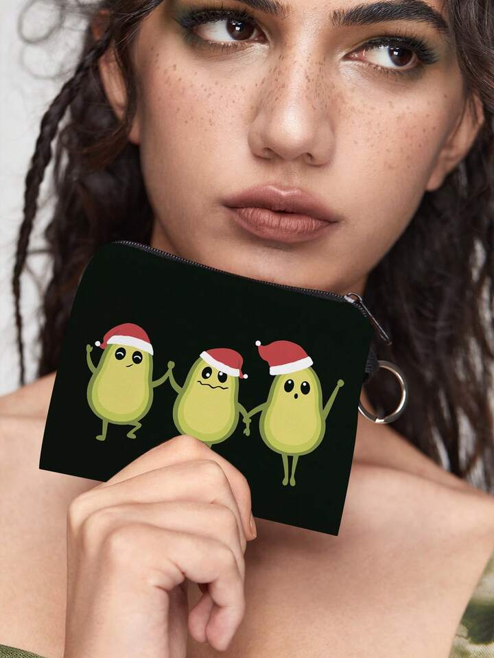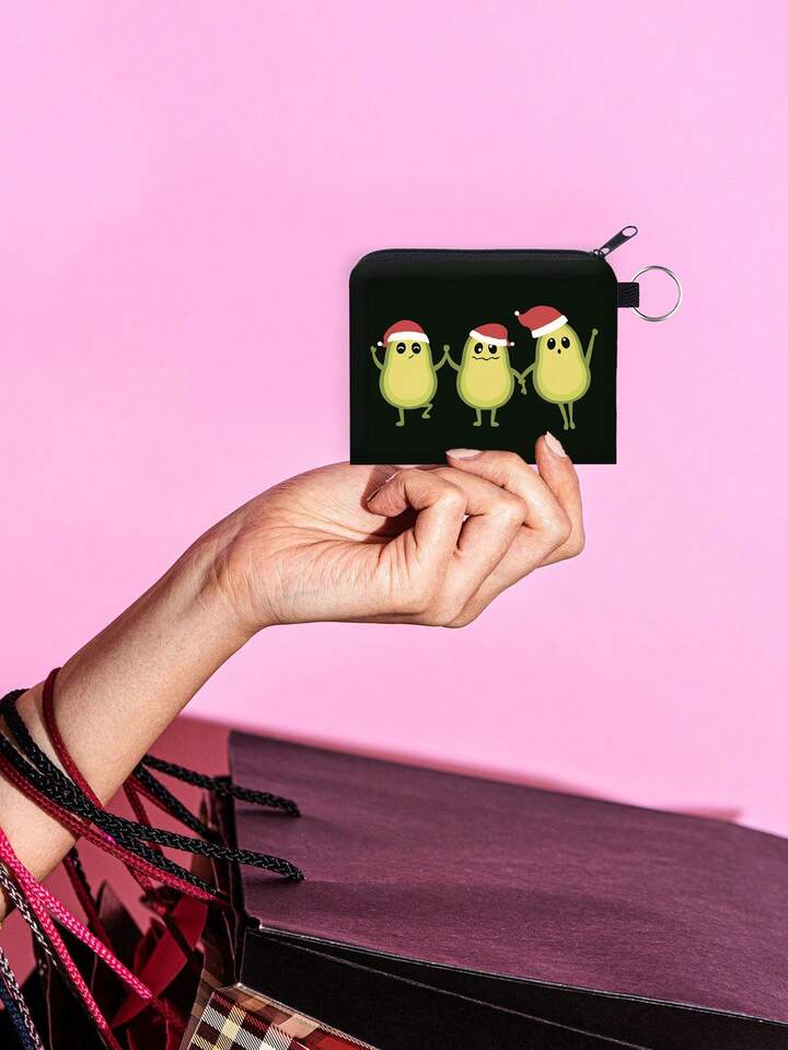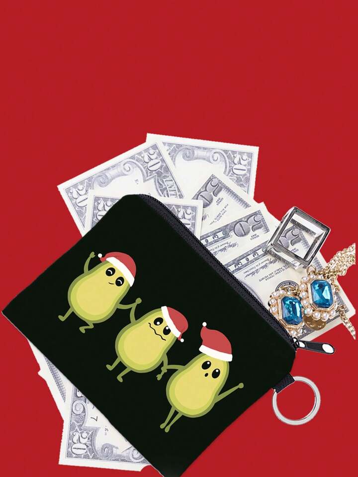 Kawaii Avocado Shaped Christmas Hat Pattern Coin Purse