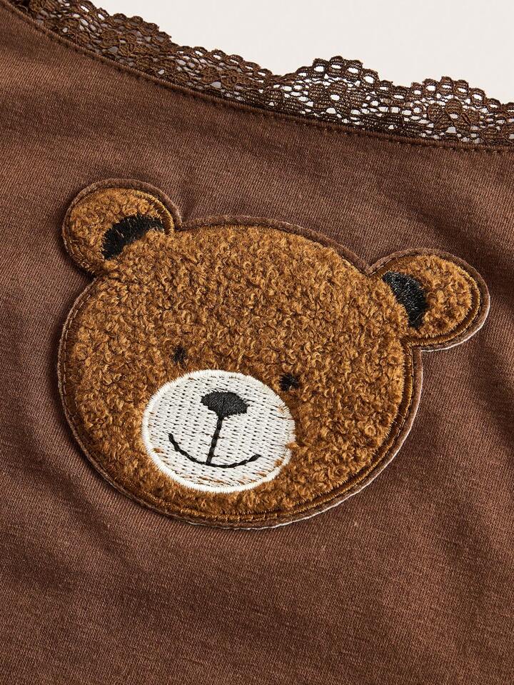 Kawaii Bear Embroidery Contrast Lace Cami Top