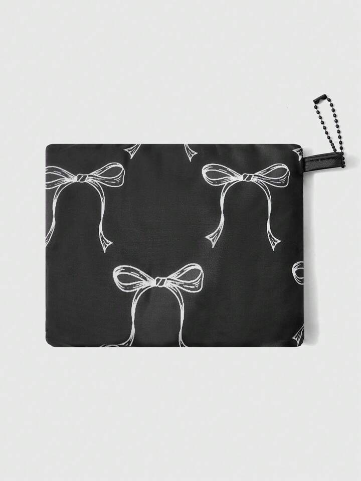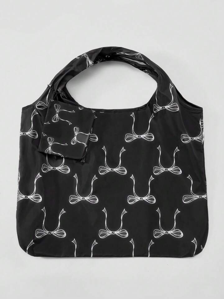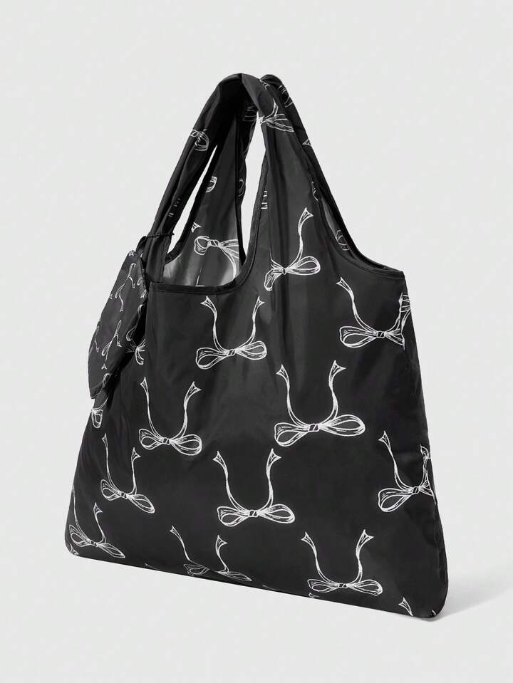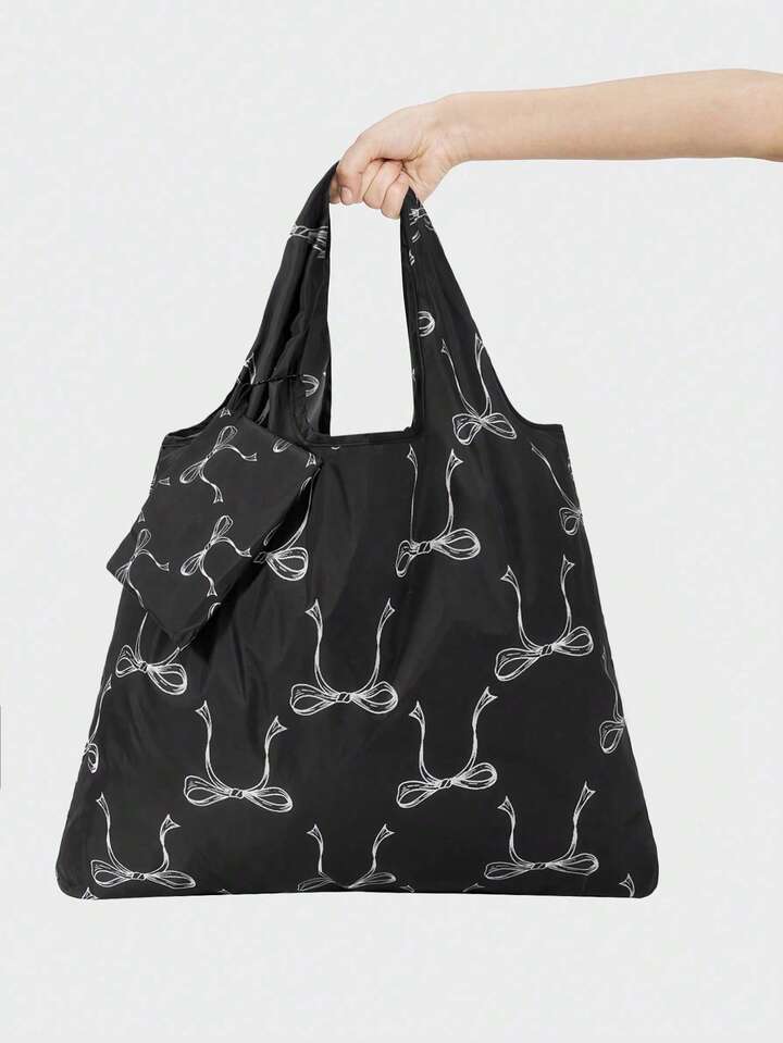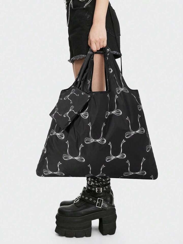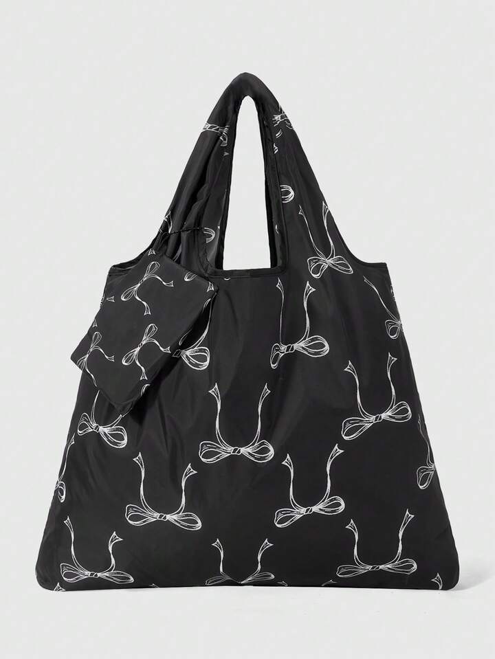 Kawaii Black Butterfly Print Foldable Tote Bag, Large Capacity Portable Shopping Bag With Coin Purse, 1116190