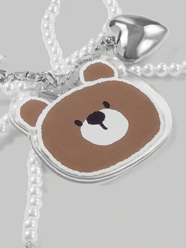 Kawaii Brown Bear Head Pattern Keychain & Keyholder Set, #286061