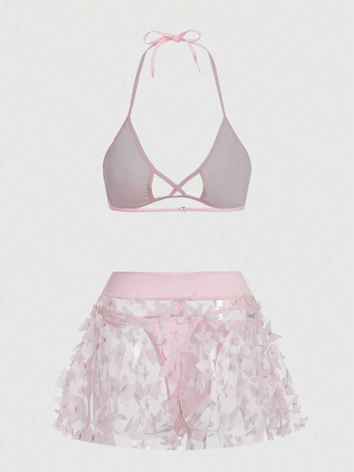 Kawaii Butterfly Appliques Mesh Lingerie Set