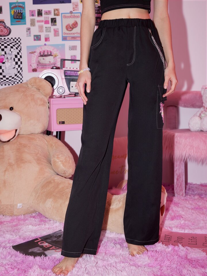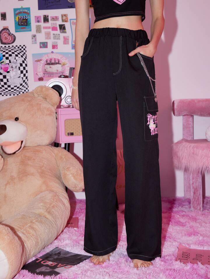 Kawaii Butterfly Letter Graphic Cargo Pants