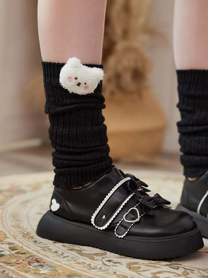 Kawaii Cartoon Appliques Lettuce Trim Leg Warmers