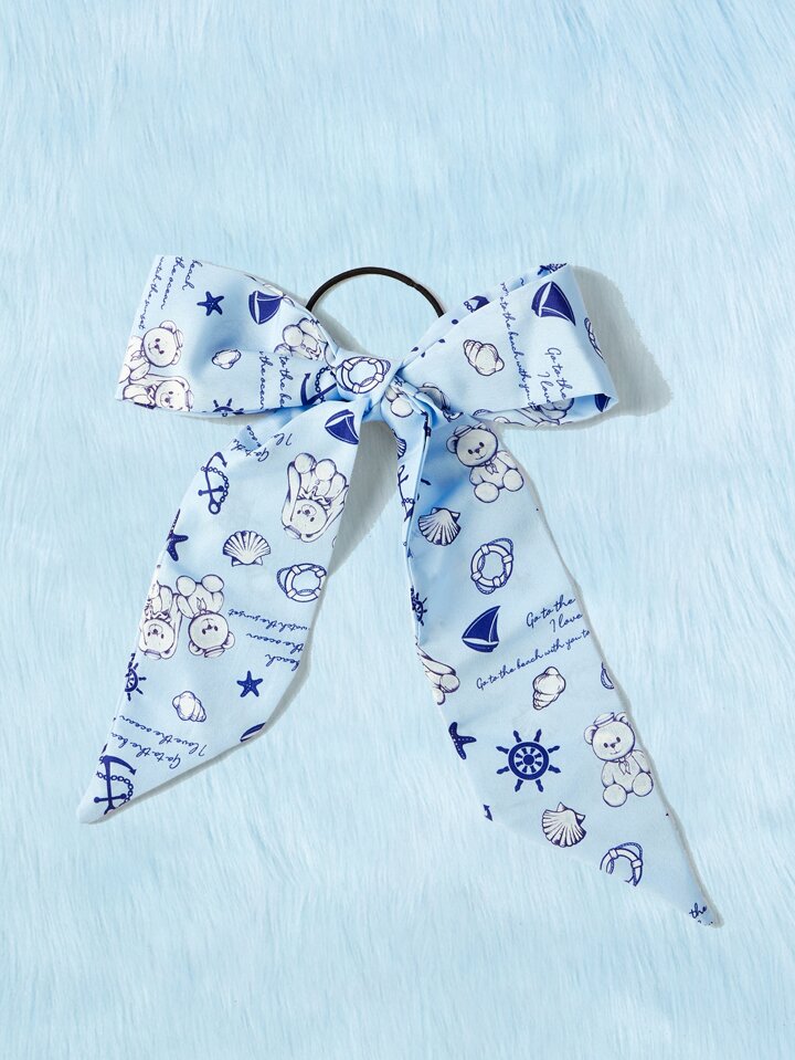 Kawaii Cartoon Bear & Slogan Graphic Scarf Hair Tie