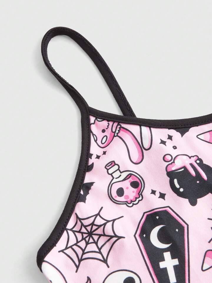 Kawaii Cartoon Graphic Contrast Binding Cami Top, School