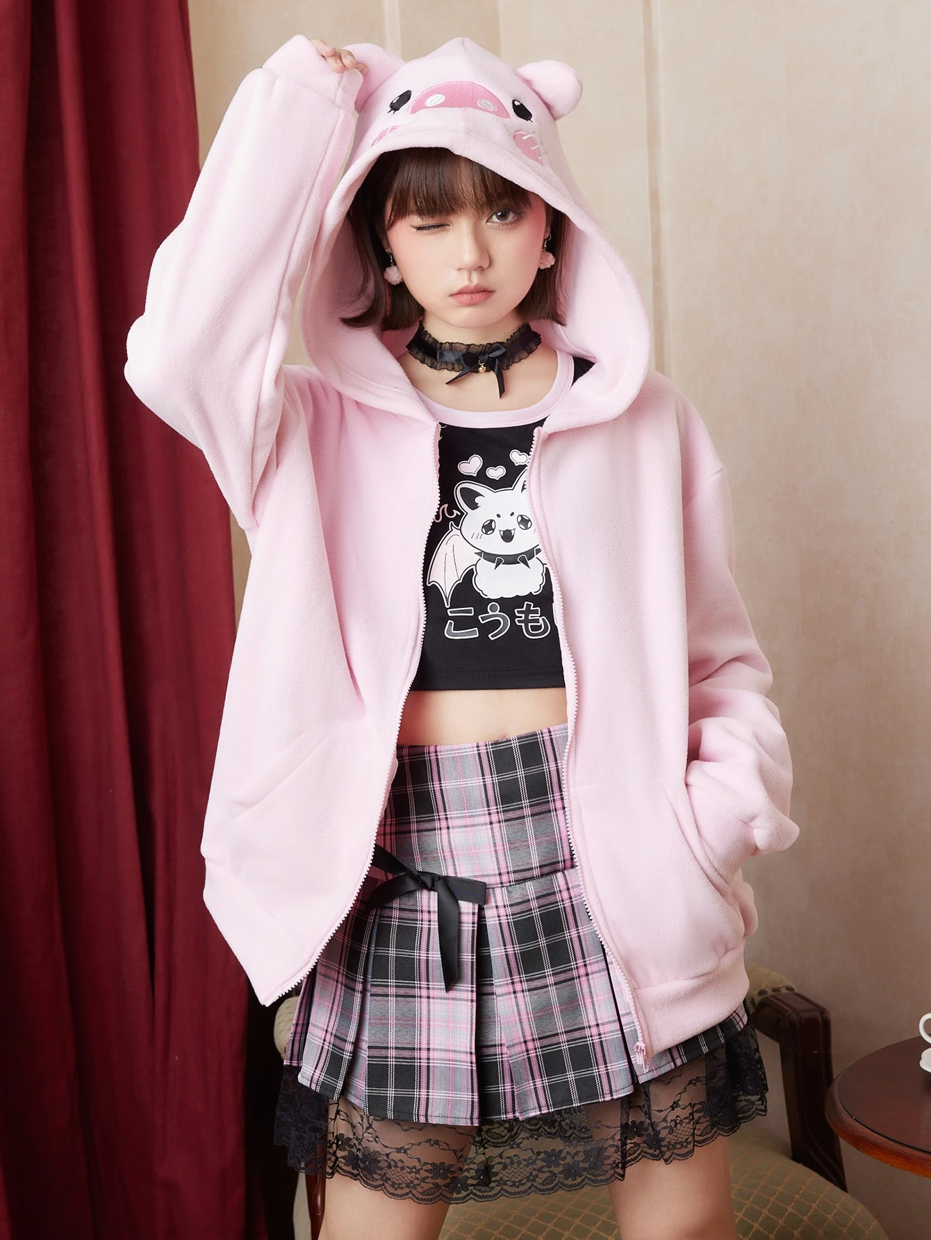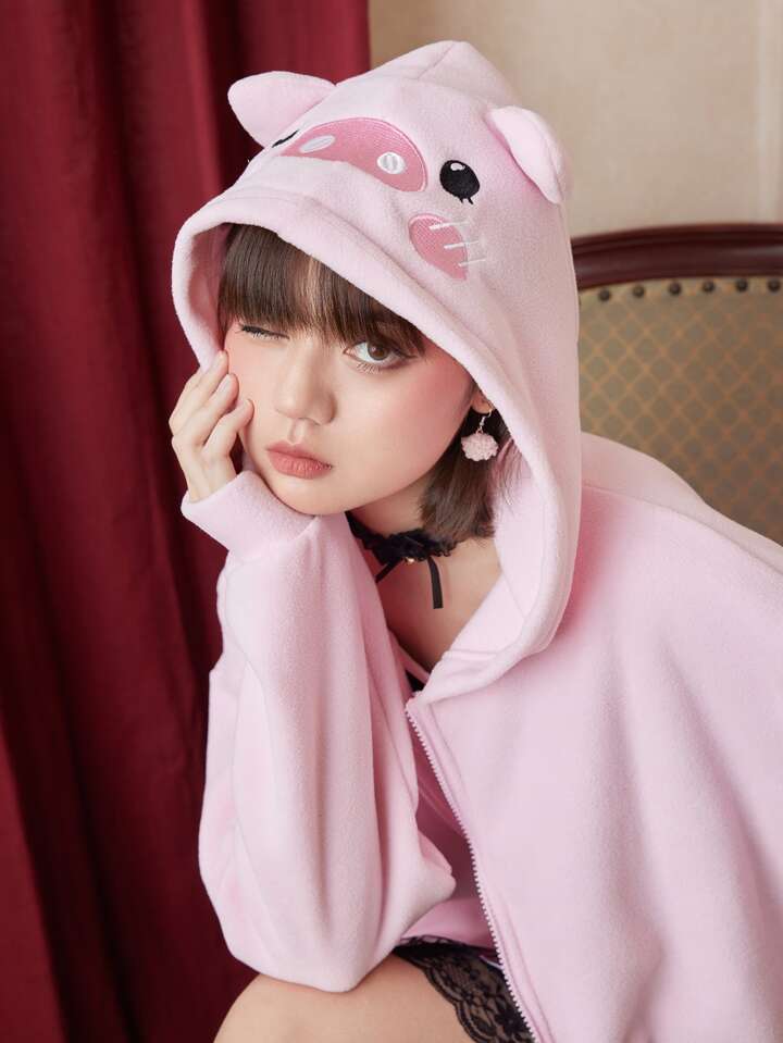 Kawaii Cartoon Graphic Zip Up 3D Ear Hooded Coat
