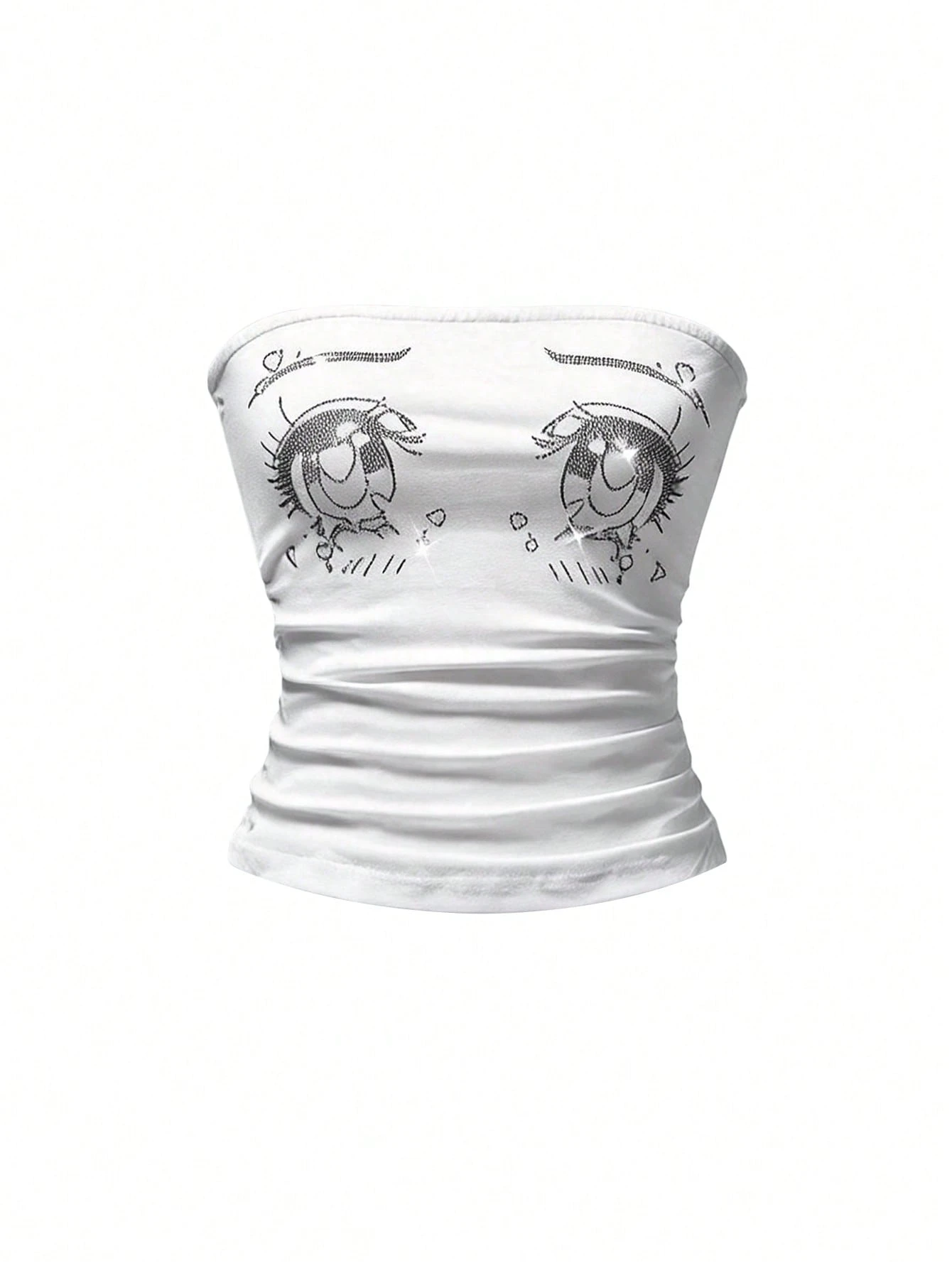 Kawaii Cartoon Japanese Style Rhinestone Decor Tight Fitting Bandeau Top